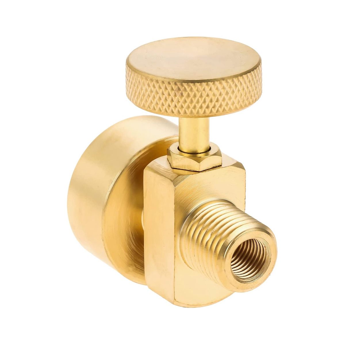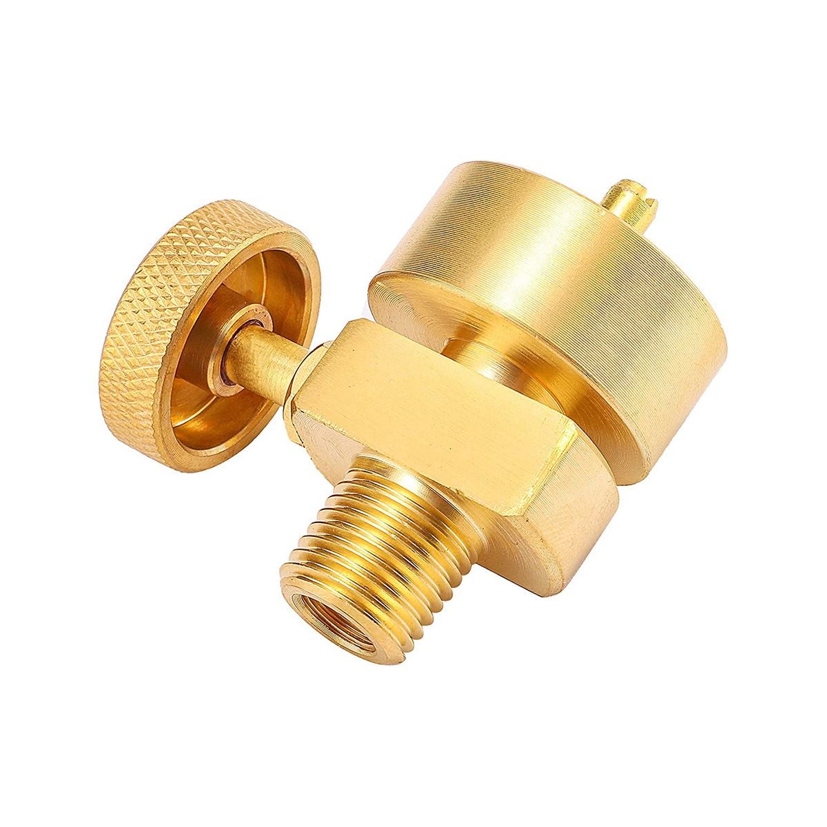 1LB Brass Propane Needle Control Valve with 1/4 inch NPT Male and M8*1 Female Thread, with 1 inch x 20 internal thread disposable cylinder thread