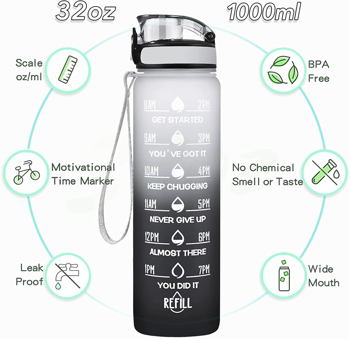 1 Liter Water Bottle Motivational Sport Water Bottle With Time Marker Leakproof Drinking Bottles Outdoor Travel Gym Fitness Jugs For Kitchen