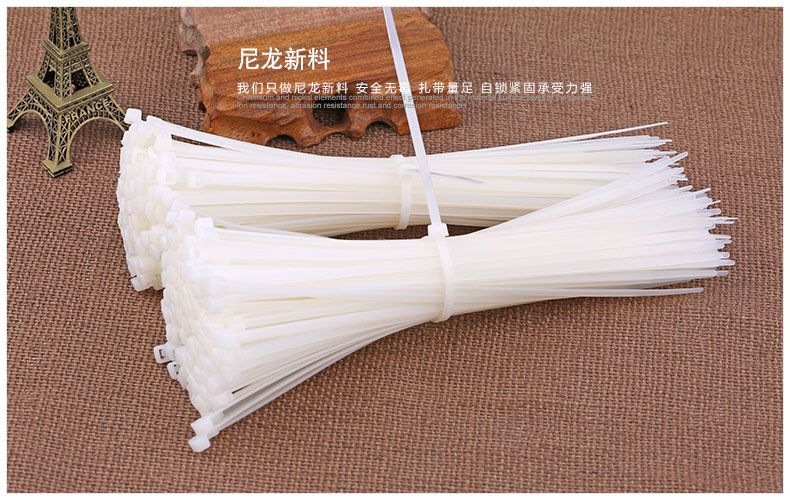 It is made of UL approved nylon-66 (Nylon 66) material by injection molding, with a fire rating of 94V-2, acid resistance, corrosion resistance, good insulation, not easy to age, and strong endurance. The operating temperature is minus 40 to 90 degrees. The product has the characteristics of fast binding, good insulation, self-locking, and easy to use.