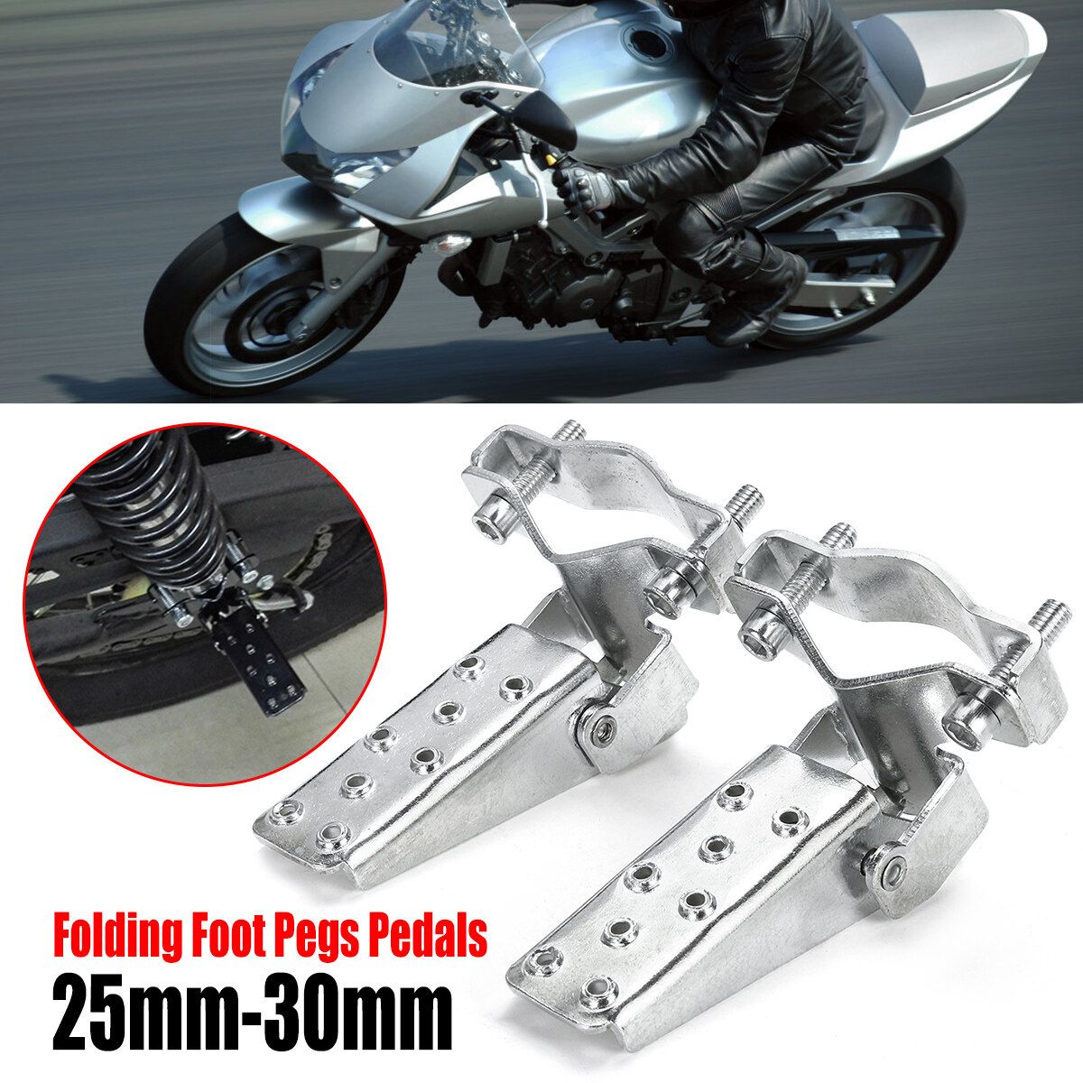 Description1Pair Black Steel Motorcycle Bike Parts Frame Foot Pegs Pedals Folding Custom 25mm-30mm