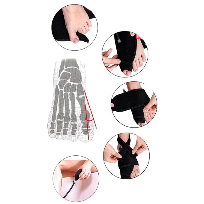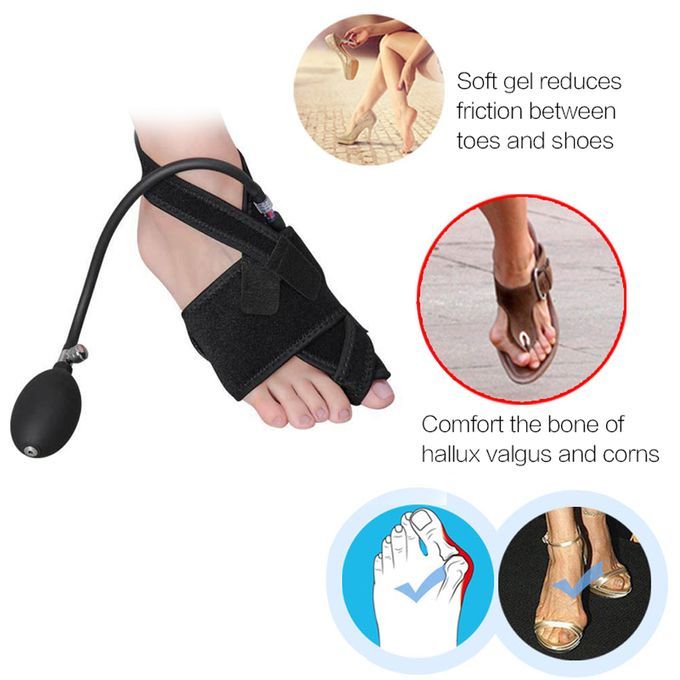 4. Newly added Inflatable function,We can adjust the pressure according to our feelings.5. Adjustable to provide comfortable wear. This bunion corrector fits most sizes and can be used by men and women. Easy to clean and reuse.