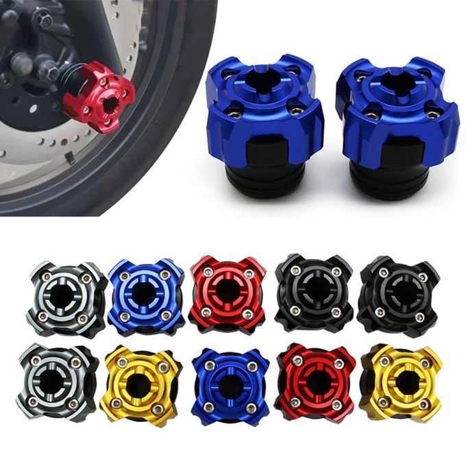 Front Fork Frame Sliders: Motorcycle Front Fork Wheel Fall Protection Slider /Anti Crash Protector Kit. The front fork frame slider helps protect the front fork of the vehicle to minimize damage to the motorcycles.