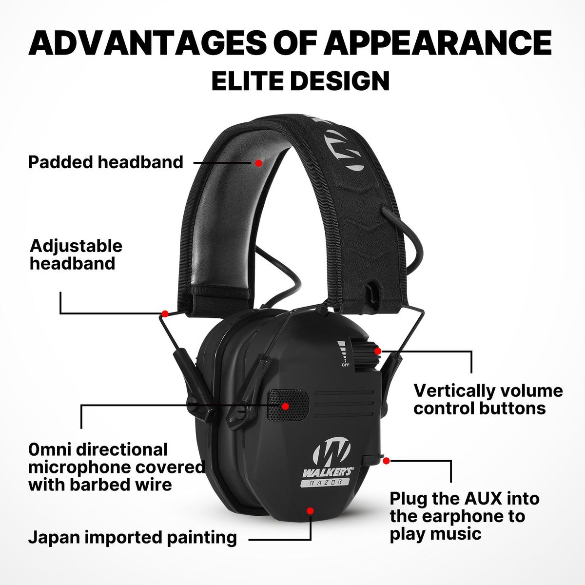 Protection muff protect your hearing at the range Includes audio input jack and recessed volume control knobsFeatures a comfortable headband with metal wire frame that folds for easy storageComposite housing gives you more effective sound dampeningIndependent volume controls give you greater control over the soundFeatures full dynamic range HD speakers for clear balanced sound with sound activated compression reaction of 0.02 secondsBoasts a noise reduction rating of 23 dB with 2 omni directional microphonesLow noise / frequency tuned for natural sound clarity