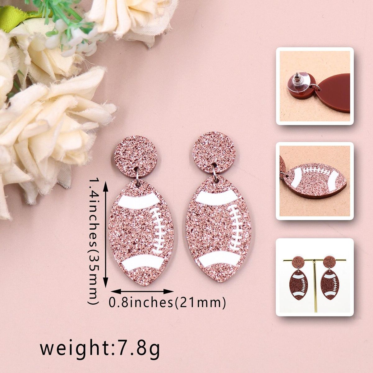 Buy 1pair New product CN Drop Football Rugby Monogram TRENDY glitter Acrylic stainless steel earrings Jewelry for women in Nigeria