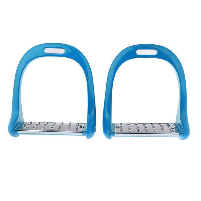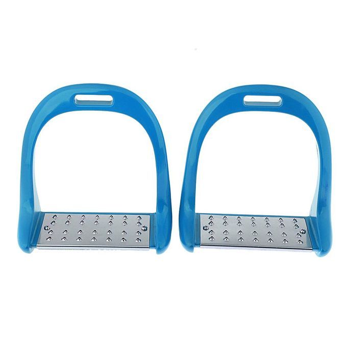 1Pair Stainless Steel Horse Saddle English Stirrups Horse Riding Blue