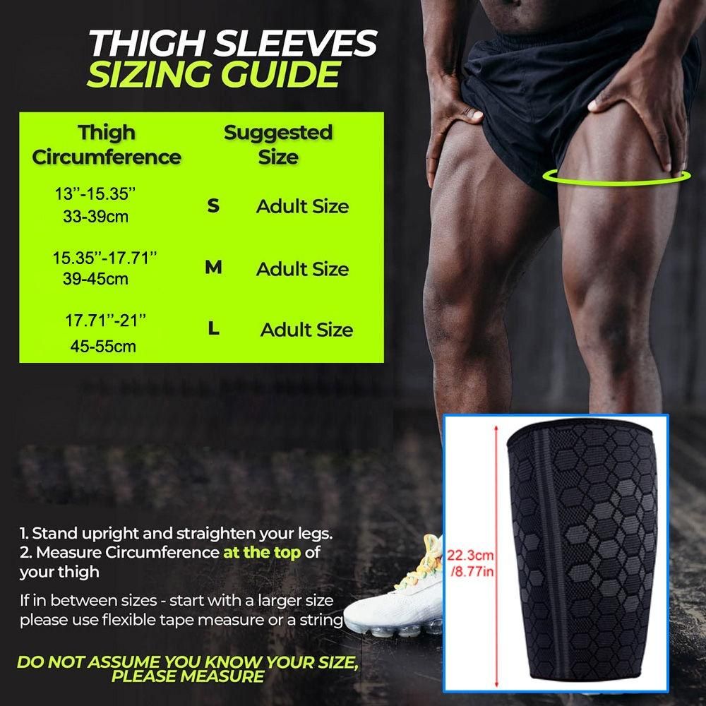 1. PAIN RELIEF AND FAST RECOVERY - Recommended by trainers and doctors, thigh sleeves will provide relief from injuries around the thigh, hamstrings, quadriceps, and groin areas. Get through your day without pain and discomfort.