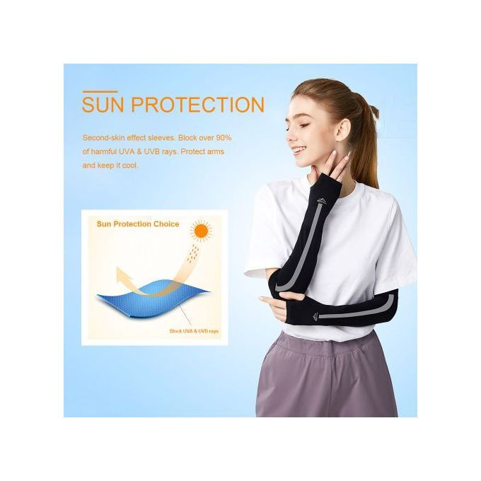 Soft and Stretchy: Crafted from nylon and spandex, it is soft, light, and seamless to wear. High elasticity to adapt to your a rms.Sun Protection: It bocks over 90% of harmful UVA & UVB rays, and keeps your skin to feel cool.Gloved Style: Cuffs are designed in gloved style to protect the back of your hand. Fits for Outdoor Activities: Cooling arm sleeves for cycling, hiking, climbing, fishing, driving, basketball, etc.