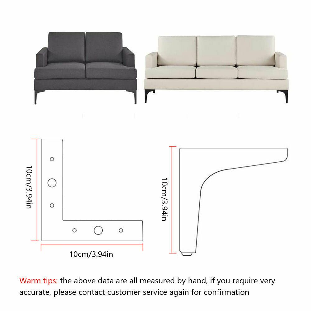 Feature: *100% and high quality. *METAL FURNITURE LEGS - Made of heavy duty , hard and durable for long time use; *STRONG LOADING CAPACITY - Stand firm and strong loading capacity, 250lbs per leg; *EASY TO INSTALL - Easy to install, raise the height of your sofa or change the style by replacing the legs; *GREAT DIY ACCESSORIS - Rubber mat protects your floor against scratches, great protector and decoration for your home; *WIDELY APPLICATION - Acceories for DIY furniture, cabinets, shelves, sofa, bed, ottoman, couch, chair, table ect; Specification: Material: Carbon steel Size: 10*10cm Color: Black,golden(As shown in the picture) Quantity: 1pcs Package includes: 1pcs Furniture Sofa Legs Note: Please allow minor error due to manual measurement. The colors may be a little difference for the different monitor display.
