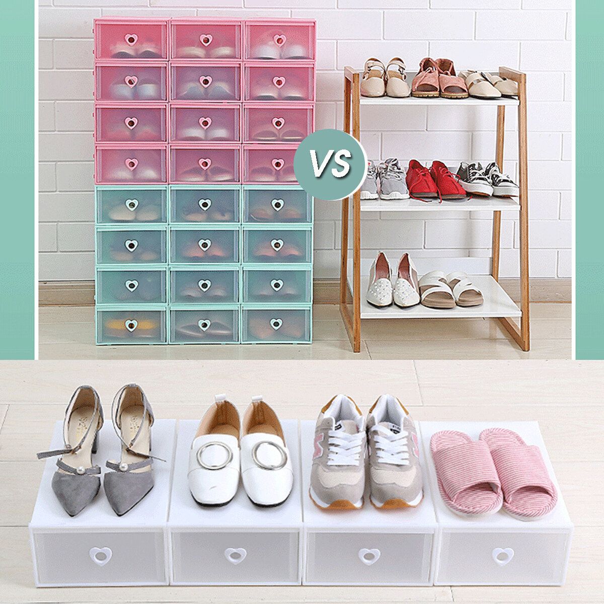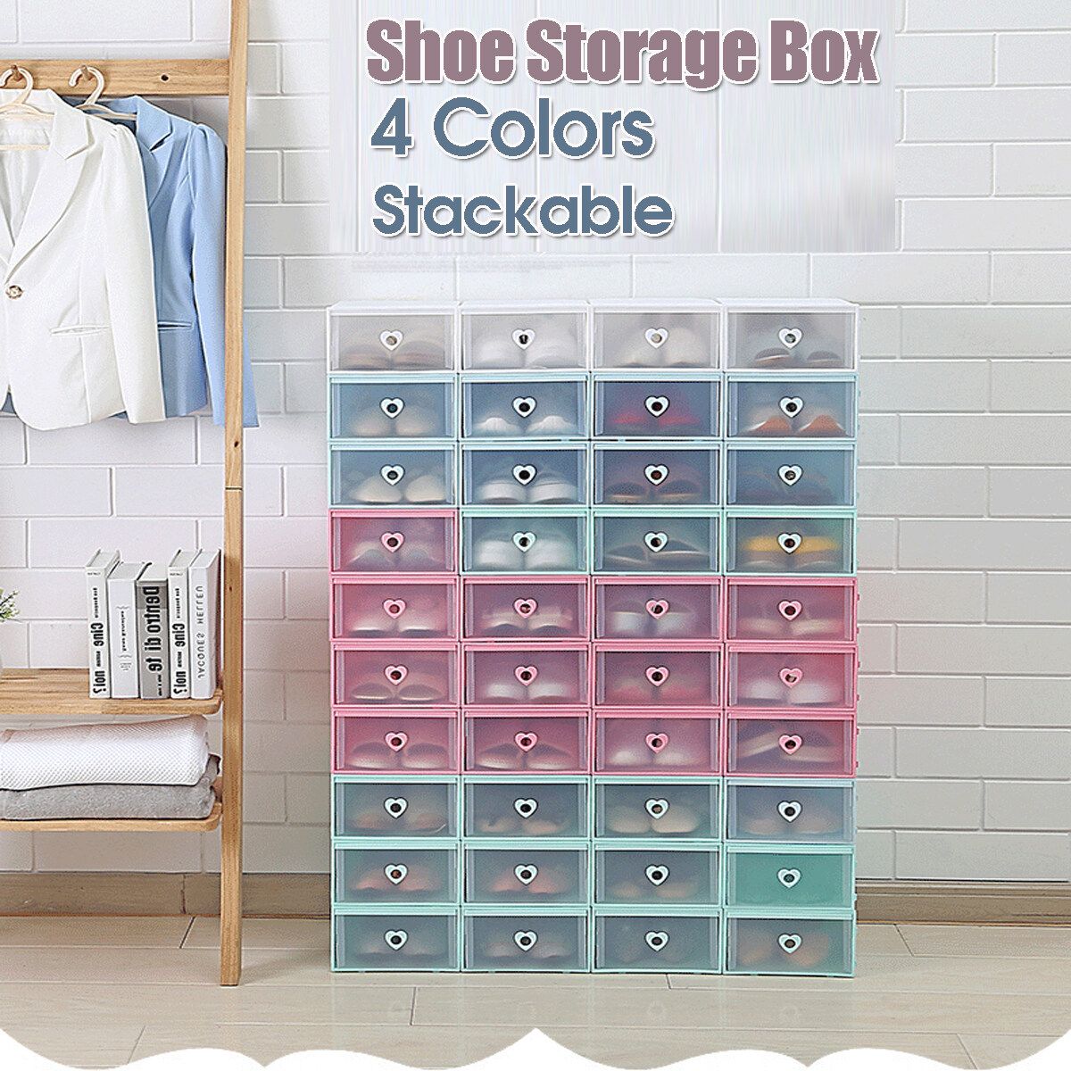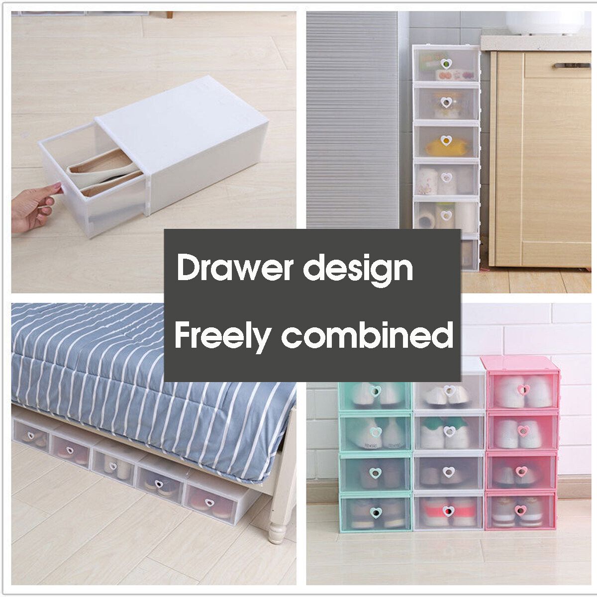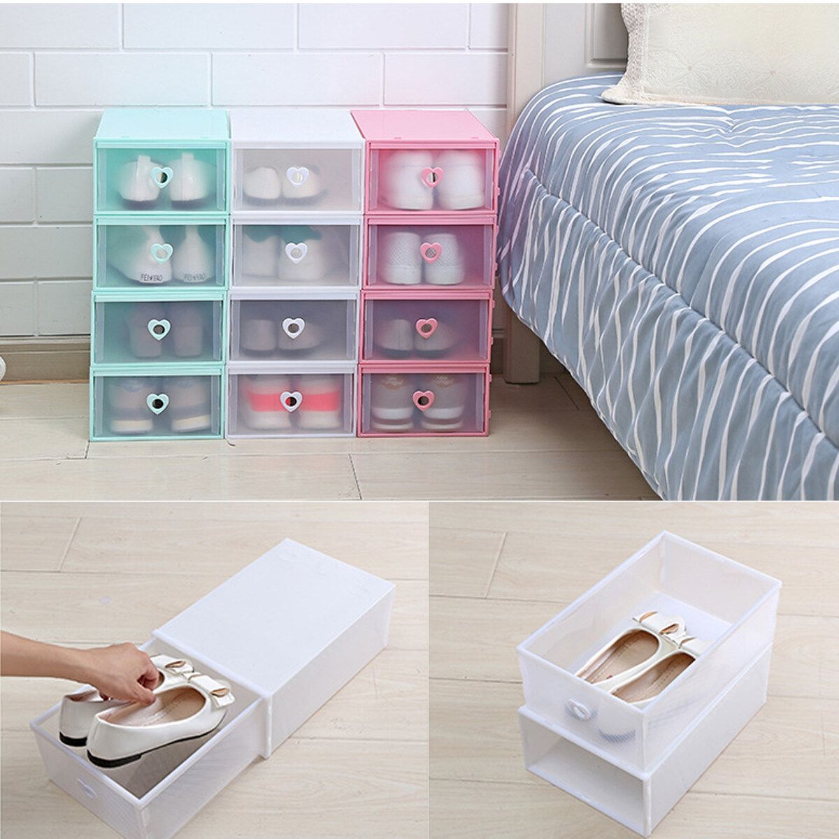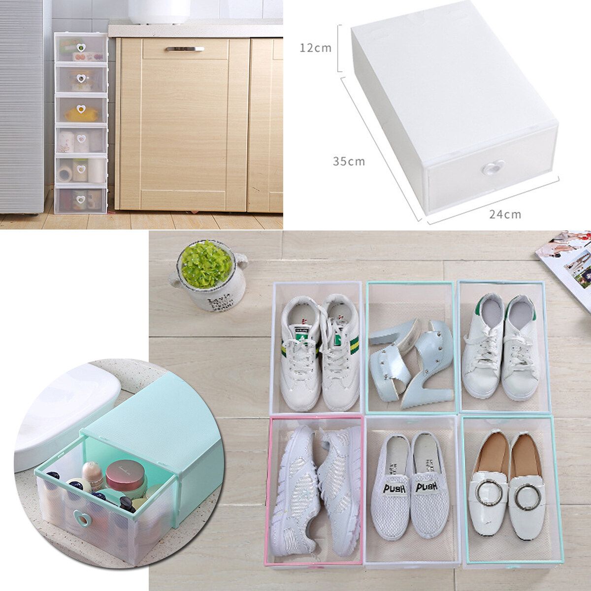 1pc Clear Plastic Shoe Storage Boxes Drawer Stackable Foldable Durable Shoe Organiser