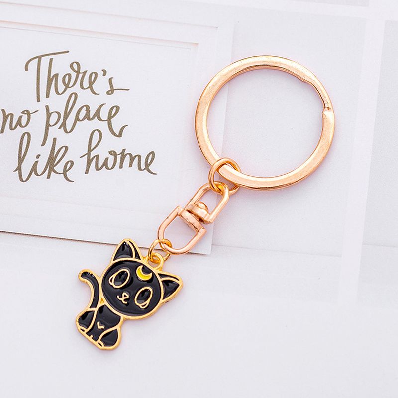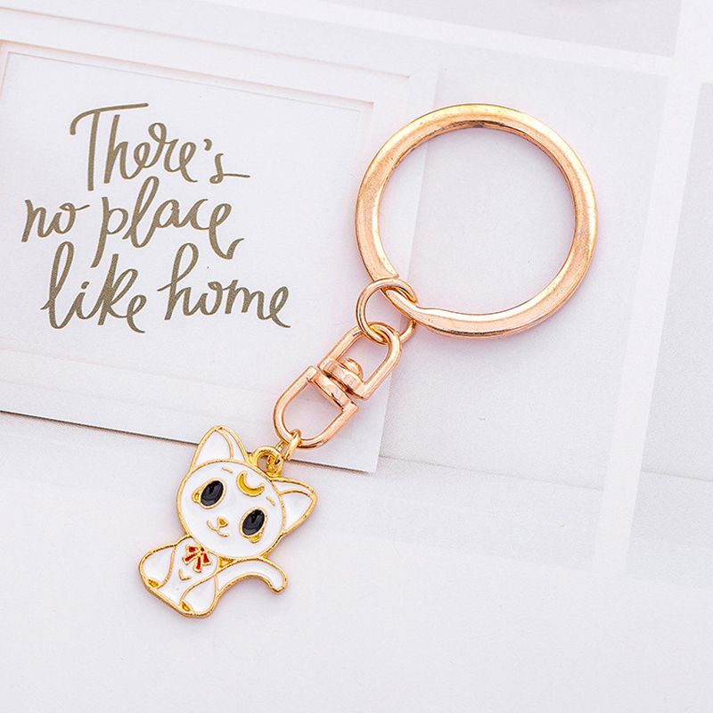 1*1pc Cute Cartoon Cat Star Heart Metal Keychain Key
