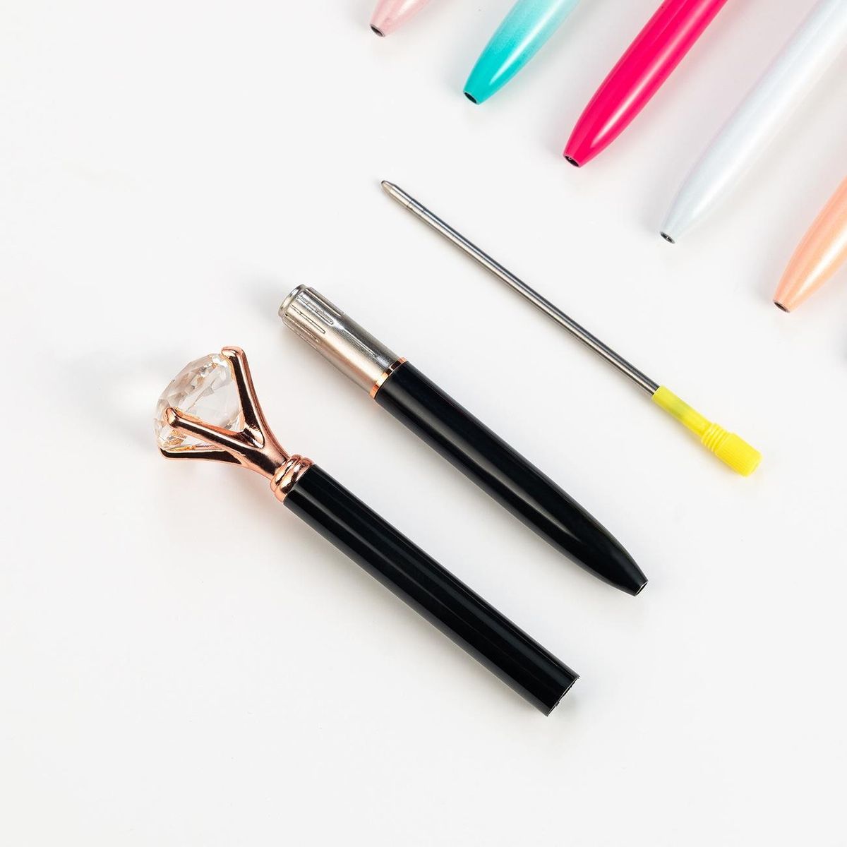 ♥Unique design, elegant writing instruments designed for the fashion- forward crowd. Each bling ballpoint Pen is decorated with a stunning metallic finish and accents, and topped with a large diamond-shaped crystal gripped by prongs for added flair.
