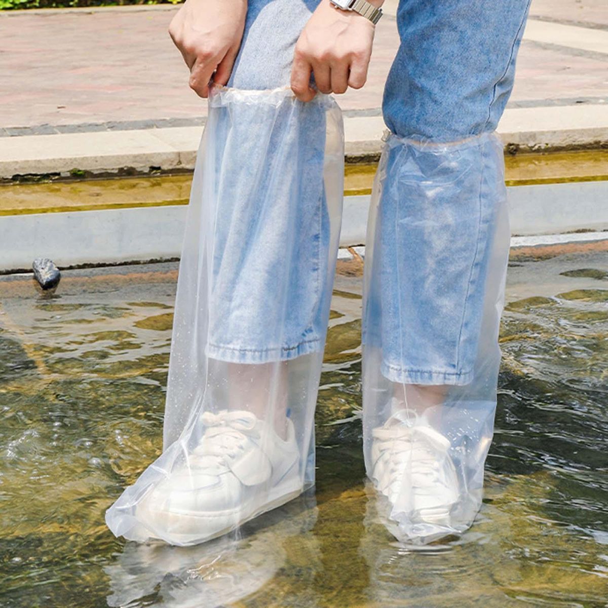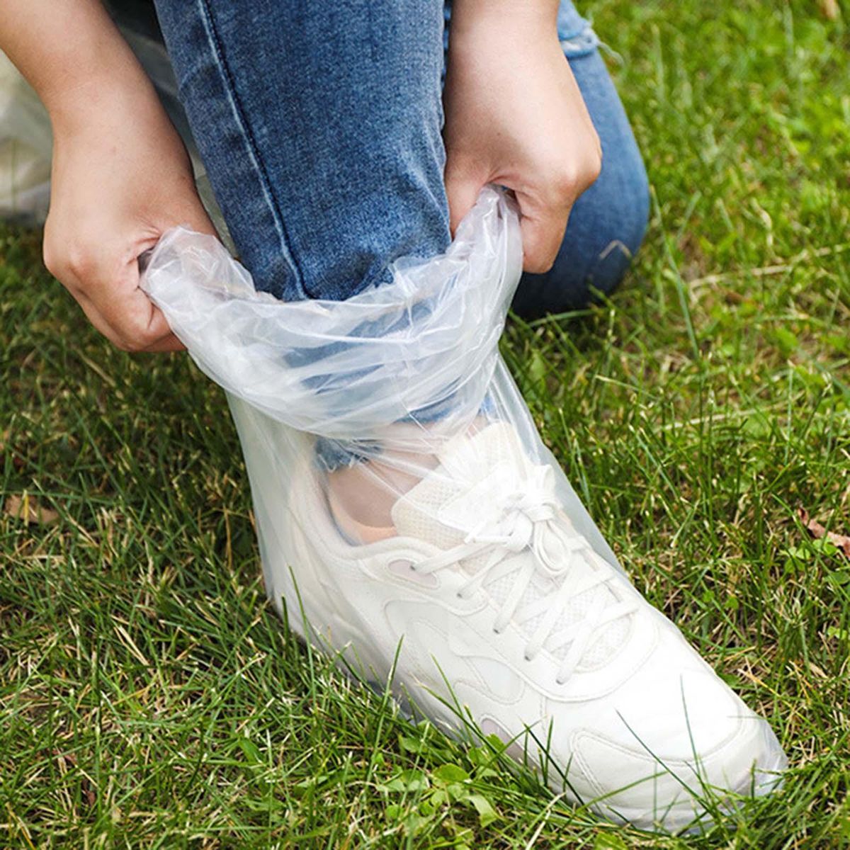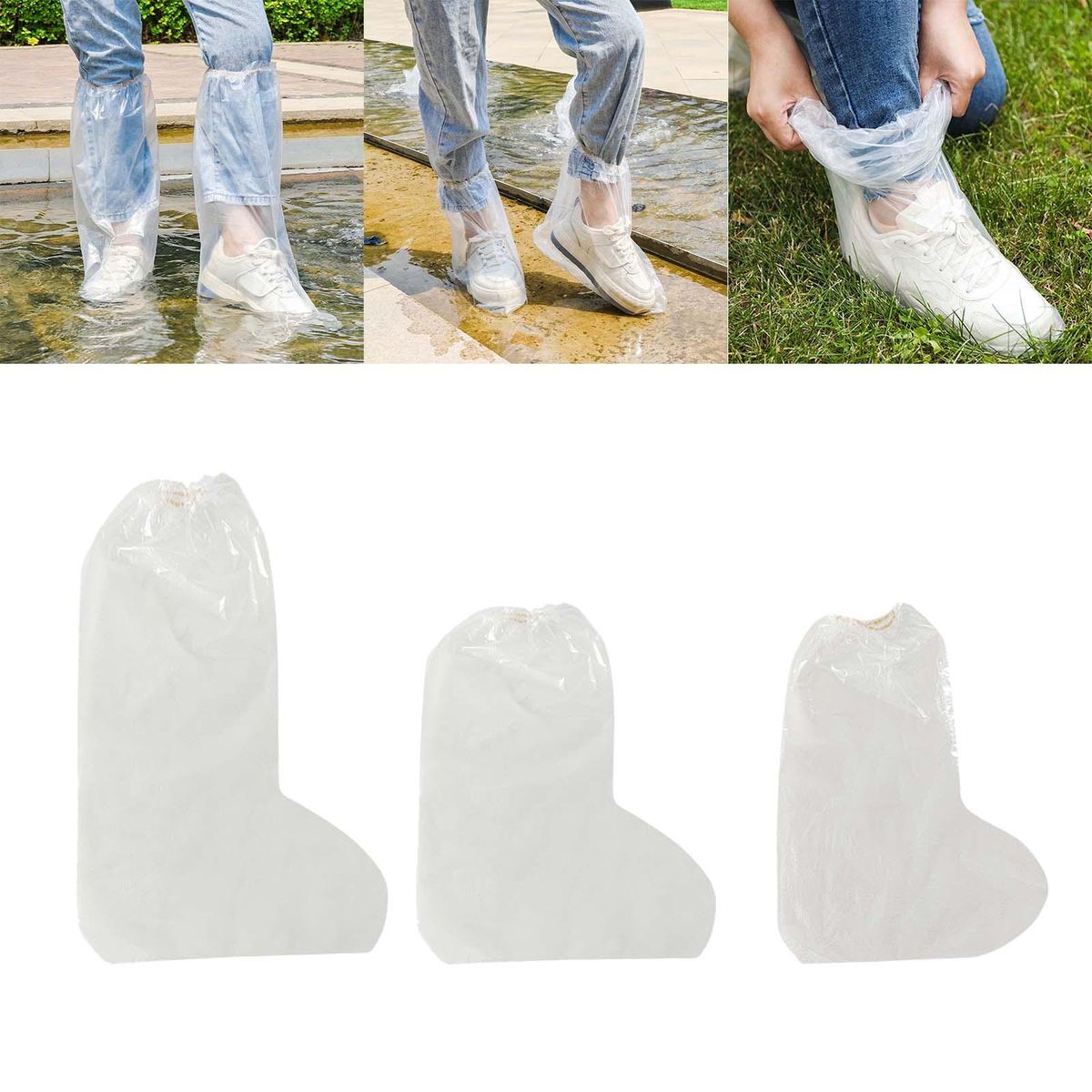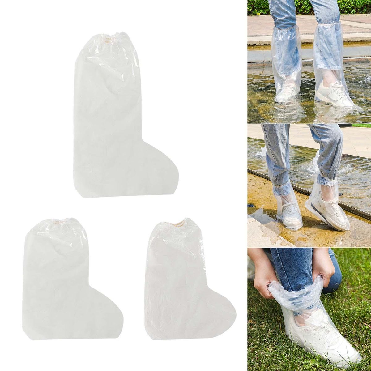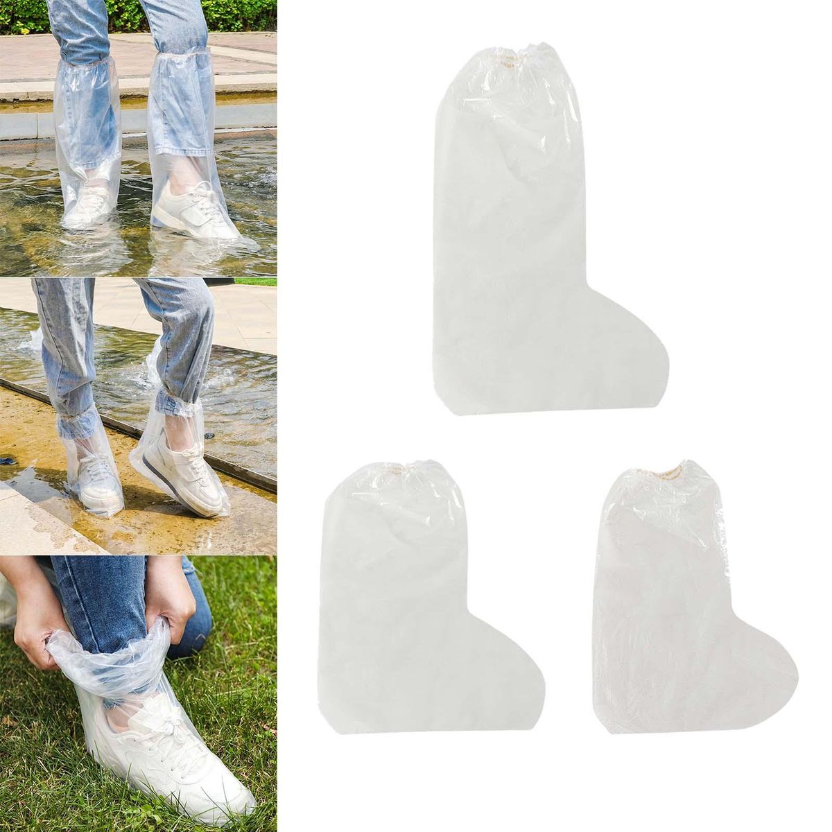 【Disposable Shoe Cover】: Clear Disposable Shoe Cover is made from PE material, thickened, not easy to break, lightweight, fold up very small and easy to carry. 【Elastic Closure】: The shoe cover designed with elastic band closure, which can tightly grip your legs and not easy to slip off, thus protecting your shoes and trousers hems from muddy water.【Wide Range of Uses】: Disposable rain boots can be used in rainy days, snowing, traveling, , fishing, beach, car washing, home cleaning, etc.【Waterproof and Stain Resistant】: Thickened disposable rain boot covers provide reliable protection for your shoes, block external water and keep your shoes clean.【Portable】: Put disposable shoe cover in your pocket, bag or backpack without taking up space to tackle with sudden bad weather.