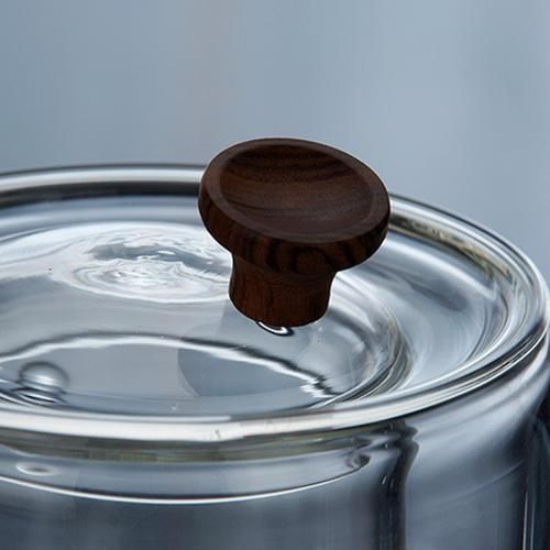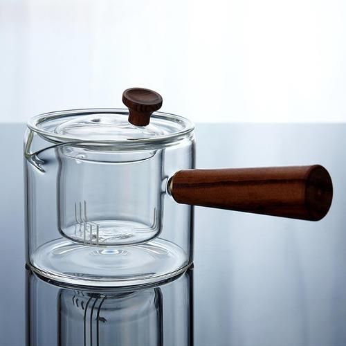 1PC Heat Resistant Glass Teapot Wooden Side Handle Kettle Transparent Teapot Boiling Tea Maker-Teapots