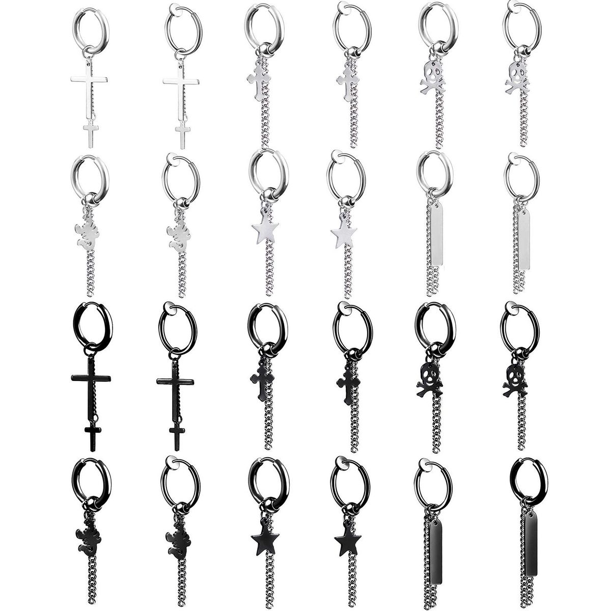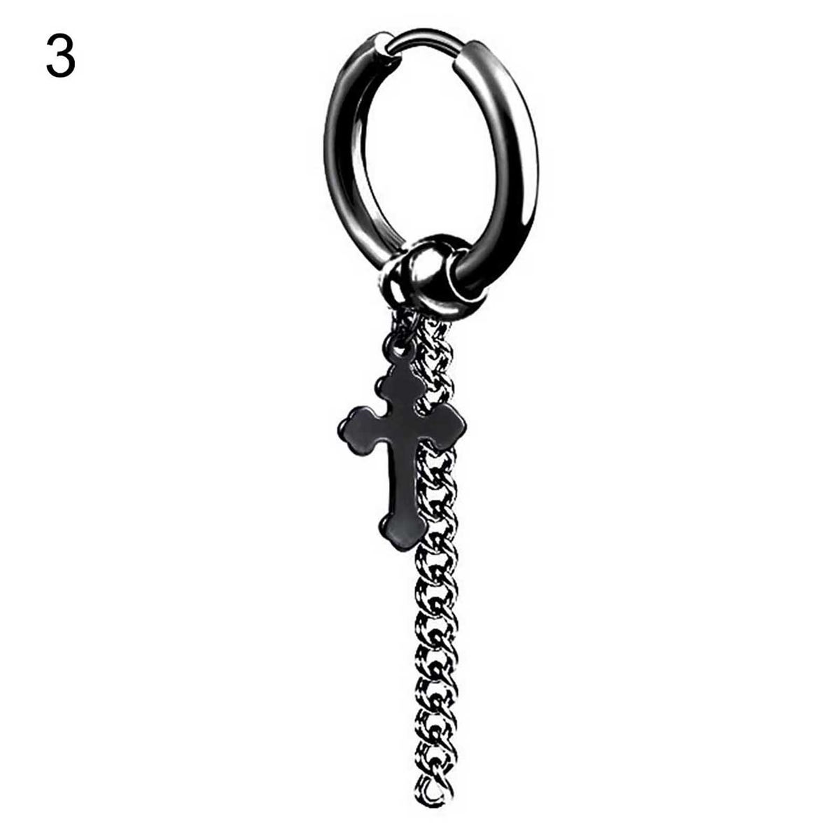Adorned with long chain and punk style dangle, this stainless steel earring is unique and eye-catching.