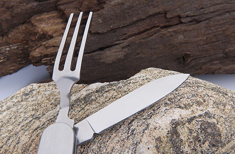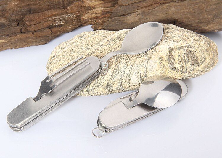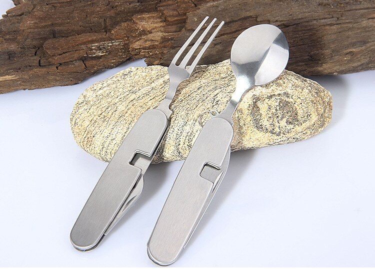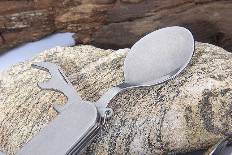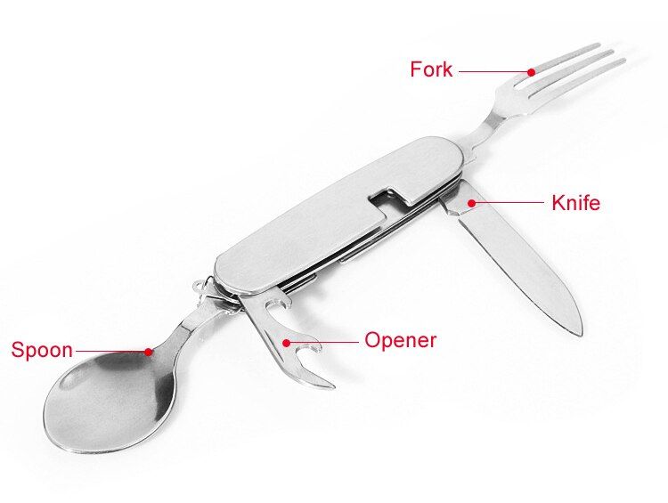 1X 1Pc Outdoor Tableware Stainless Steel Spoon/Fork//Bottle Opener 4 in 1 Folding Cutlery Set Multifunctional GYH