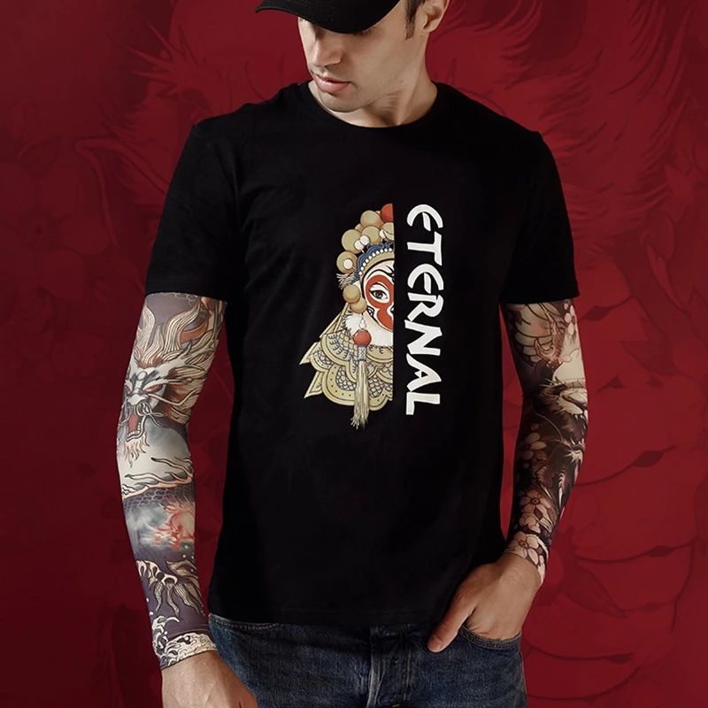 long sleeveProduct style: tattooTexture: 92% Nylon + 8% SpandexProduct design: various fashion stylesProduct use: Both men and women can use it, and can be worn on hands and feetProduct size: one size, elasticUnexpanded size in natural state: the diameter of the upper cuff is about 9cm; the diameter of the lower cuff is 7cm.. The length is about 37cm (the extension length varies according to the thickness of each person's arms and legs)Packing: 1PC (random)