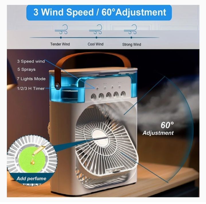 All Year Round 4-IN-1 Portable Air Conditioners - The air cooler features a multifunctional design, which can be used as fan, portable air conditioner, humidifier, and night light. We have improved this personal air conditioner to make it smaller and more powerful. Cooling you in hot summer and humidifying the air in dry autumn and winter, it is also used for aromatherapy on weekdays.
