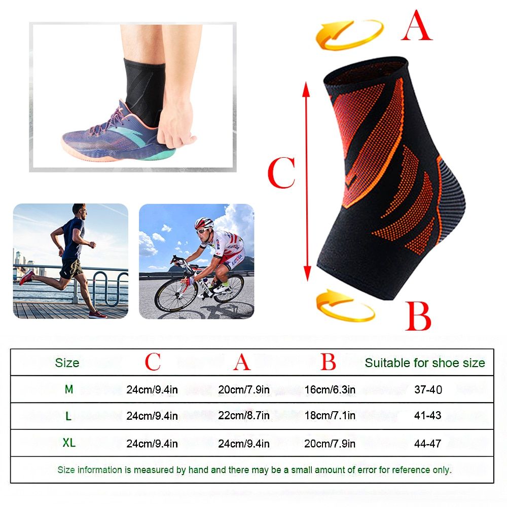 Package Include: 1Piece * Ankle Support (Not a pair) Notes: This is for 1 piece, Can be worn on right and left ankle. Size Chart: M ---Length: 24cm/9.4inch UP Circumference: 20cm/7.9inch Down Circumference: 16cm/6.3nch Suitable for Europe shoe size: 37-40 L ---Length: 24cm/9.4inch UP Circumference: 22cm/8.7inch Down Circumference: 18cm/7inch Suitable for Europe shoe size: 41-42 XL ---Length: 24cm/9.4inch UP Circumference: 24cm/9.4inch Down Circumference: 20cm/7.9inch Suitable for Europe shoe size: 43-47 Notes: the product size is manual measurement, Please allow 1-2cm measuring deviation . Specifications: 1. Brand: SPOSAFE 2. Name: Ankle Support 3. Material: Nylon 4. Color: Grey, Red, Blue, Orange 5. Weight: 46g/pc 6. Size: M, L, XL 7. Suit for: Adult Men and Women 8. Applicable Scene: Basketball, Football, Soccer, Volleyball, Tennis, Badminton, Golf, Climbing, Mountaineering, Hiking, Cycling, Biking,Running,Weight Lifting, Yoga, Sports Fitne and so on . 9. Due to various monitors and lighting conditions, colors may be slightly different from listed photos. Features: 1. Soft and Comfortable: Made of high-quality breathable nylon material, with excellent strength and versatility, absorb sweat quickly and make your feet comfortable. 2. Fast Recovery: Open toe antiigue sleeves can efficiently recover your troubling plantar fasciitis, ankle, spurs pain, edema, also improve blood circulation, arch support, and ankle stability for sports. Better oxygen circulation helps reduce lactic acid build up and aids muscle recovery in ankle and feet, including your heel and arch. 3. Versatile Purposes: This arch support provides unmatched comfort and pain relief for your feet. Strong protection at the ankle and foot helps force balance to prevent twists and sprains caused by exceive forces. 4. A Perfect Acceory For Everyone: runners, walkers, athletes, nurses and doctors, etc. 5. Ideal For Every Day Use: These high performance foot sleeves are optimally designed for a perfect fit and everyday use. Ideal for those who are on their feet a lot or play sports regularly. They can be worn with shoes or under normal socks. Function: 1. Reduce plantar fasciitis. 2. May help aid your recovery. 3. Breathable and comfortable as we use anti itch andbacterial material. 4. Promotes better blood circulation. 5. Allows greater flexibility and motion with no skin chafing or irritation. 6. Arch Support: The Compreion Foot Sleeve provides planters fasciitis arch support to help further reduce Plantar Fasciitis pain. It also provide ankle support and is a light compreion ankle sleeve. 7. Comfortable for All Day Wear: May be worn during the day, at night, or even during exercise to provide arch support and reduce heel pain. The thin profile fits comfortably under shoes and it can even be used with a plantar fasciitis night splint.