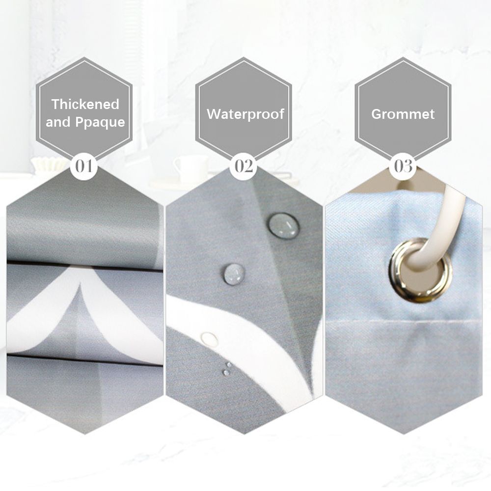 1. The fabric of this shower curtain is smooth, which greatly improves the waterproof function and effectively prevents the shower curtain from sticking to the body when taking a bath.