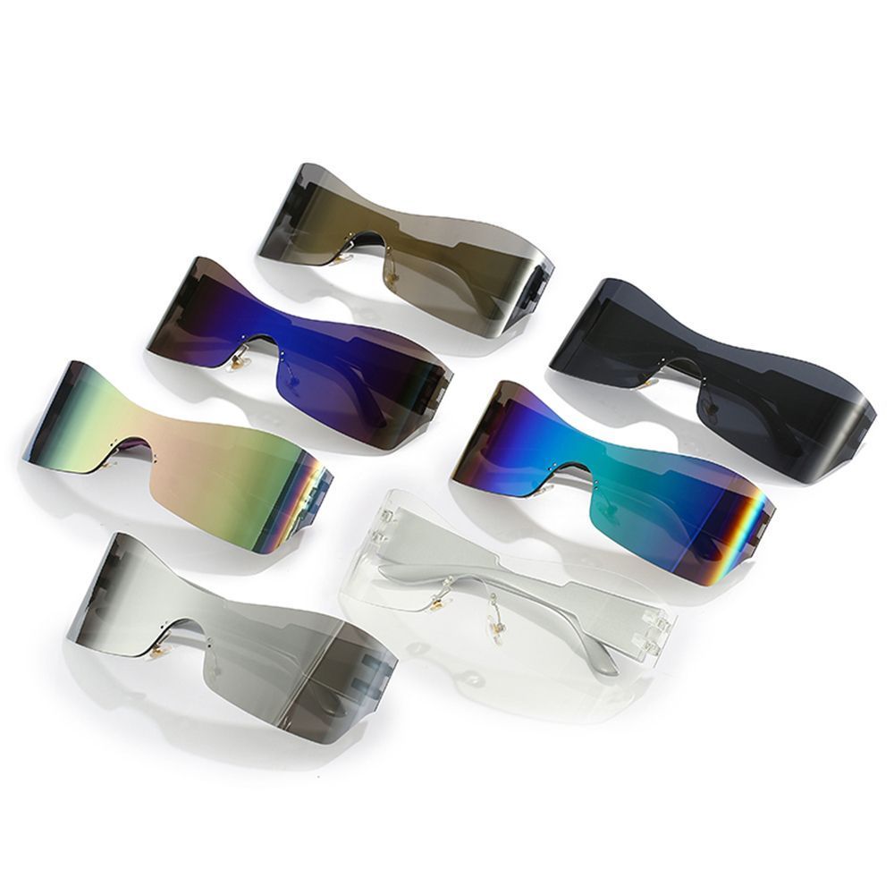 1X 1PC Y2K Wrap Around Sunglasses Trendy Rimless Futuristic for Women Men Punk Sun Glasses Sports Cycling Goles UV400 Eyewear