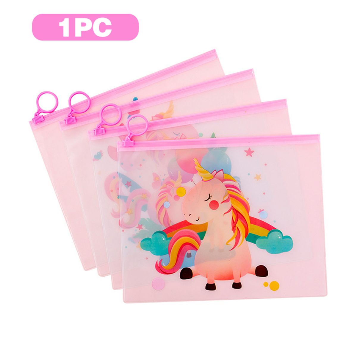 1PC Zipper File Bag Unicorn-Pattern Stationery Bag Storage Organizer Pen Pouch Cosmetic Bag for Students Office School Supplies Stationery-Four Patterns Optional