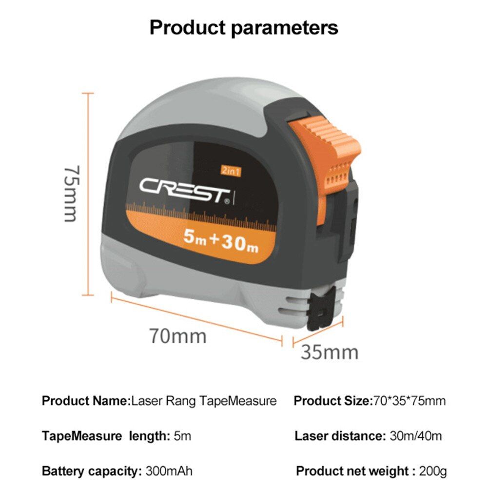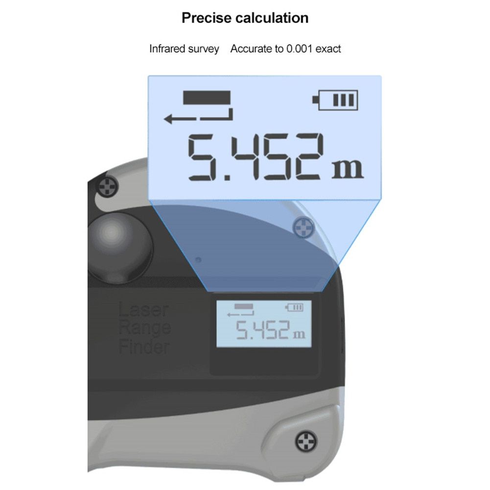 2、Multi-purpose: Equipped with close-range measurement, accurate measurement, light splitting lens, backlight display, and with two functions of tape measure and infrared measure, 30m infrared range finder+5m tape measure, which can meet your multi-purpose requirements with higher measurement efficiency.