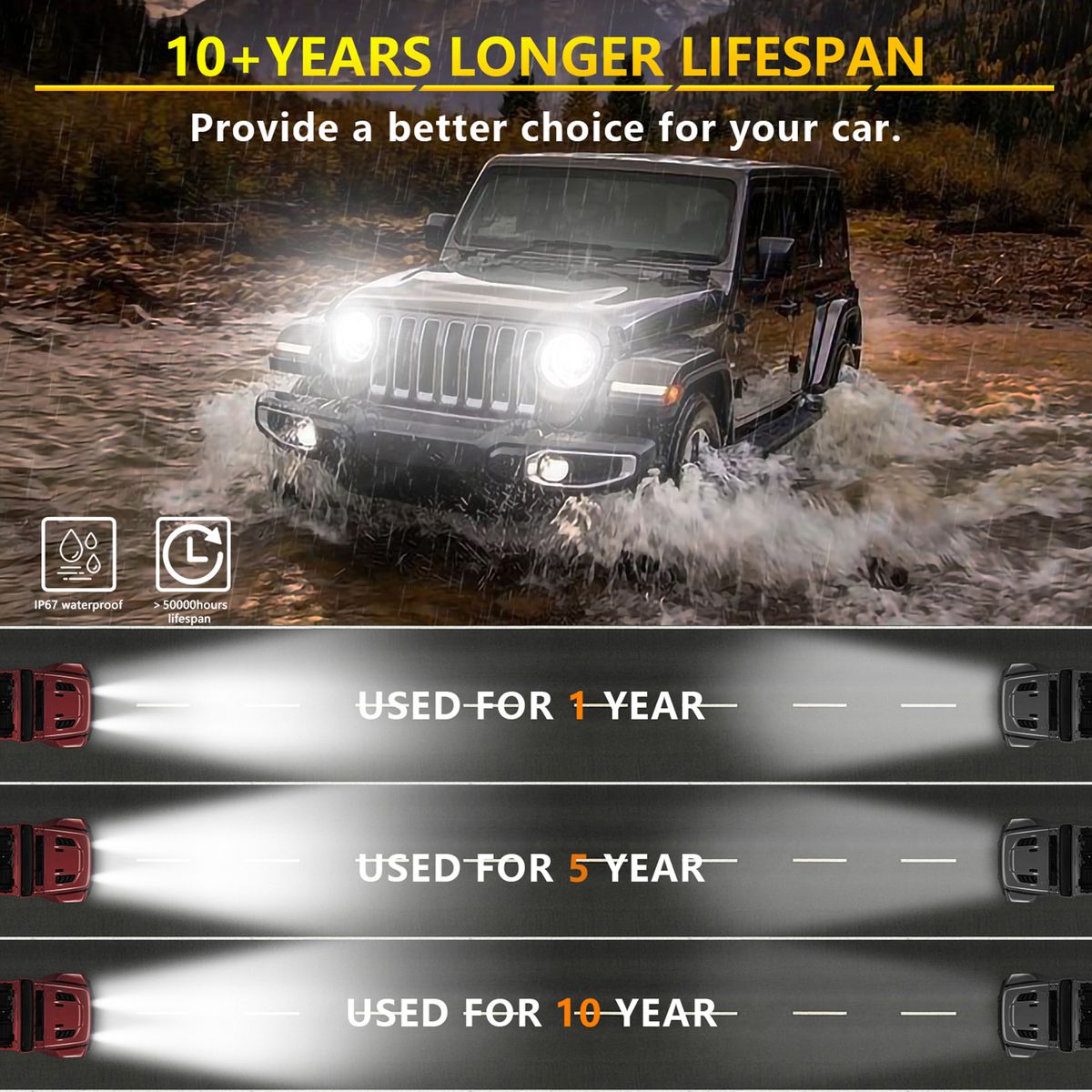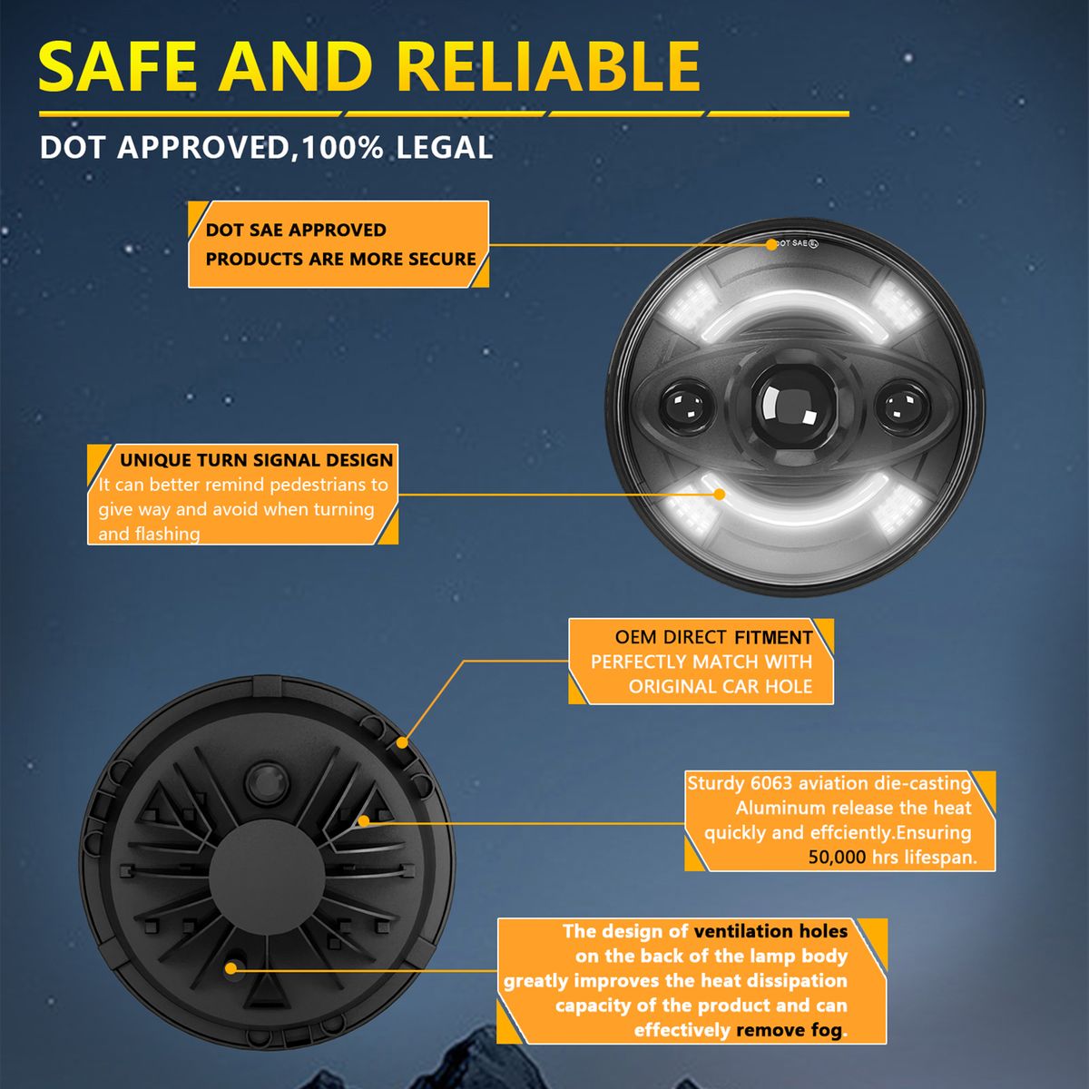 Enhancing Driving Safety: The new 7-inch LED headlight uses premium quality LED chips, equipped with yellow turn signal lights and white daytime running lights, which can effectively remind pedestrians or vehicles opposite during daytime driving or turning, so that they can take corresponding measures, to stop or give way.