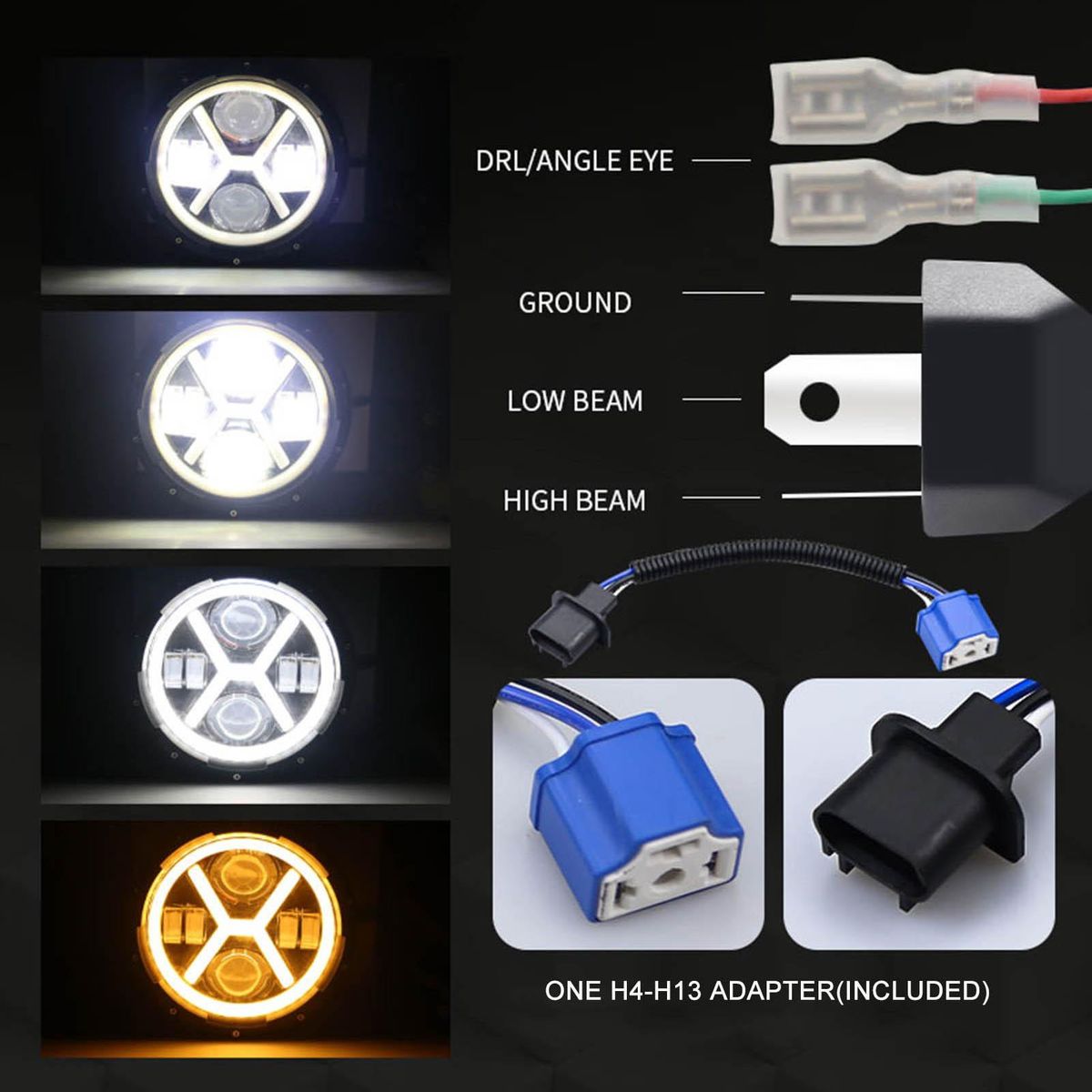 Buy 1PCS 7in Round LED Projector Headlight X-Type Hi/Lo Beam Super Bright Headlamp Replacement for Jeep Wrangler JK JKU CJ LJ TJ Hummer H1 H2 in Nigeria