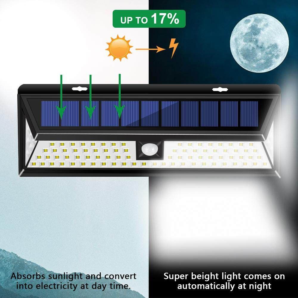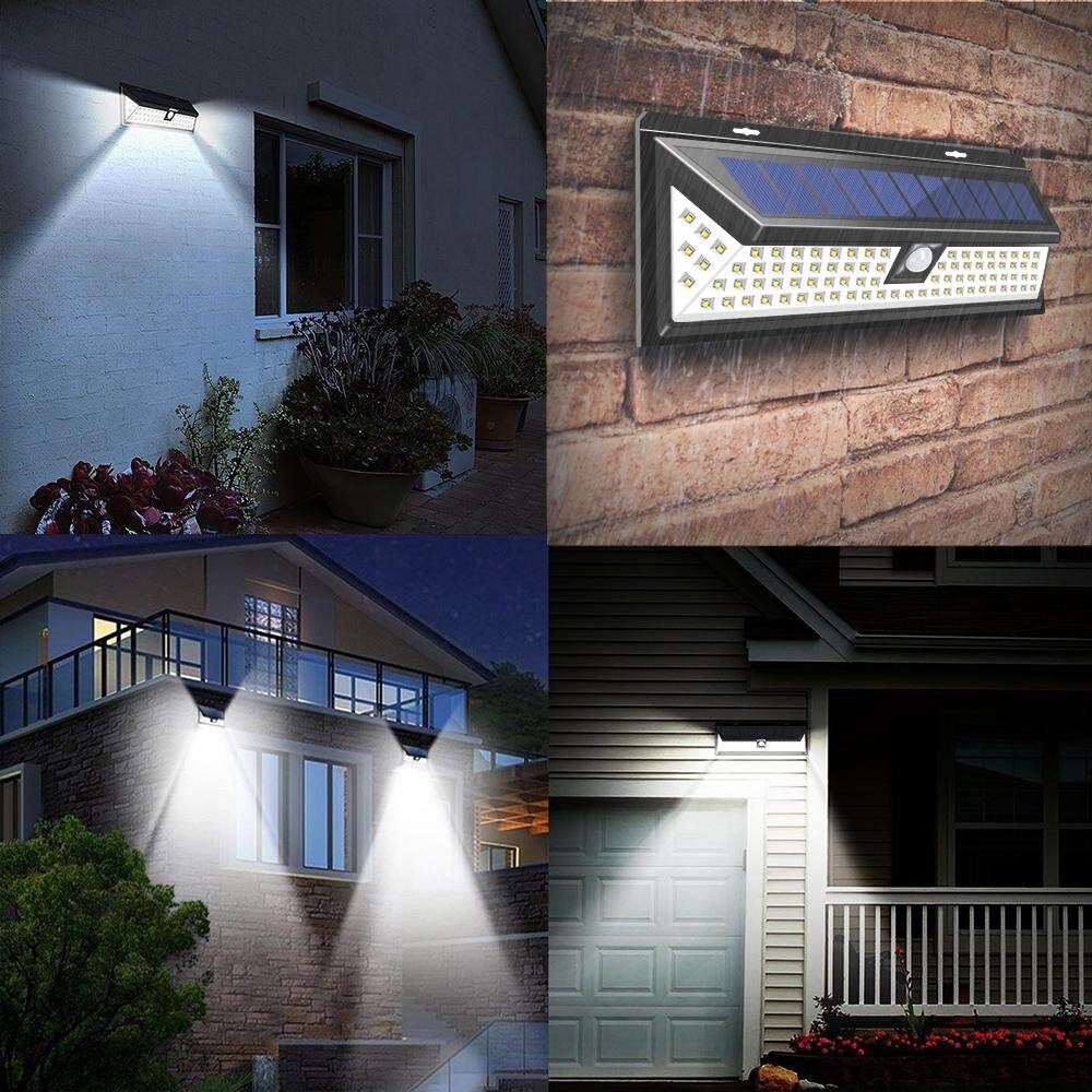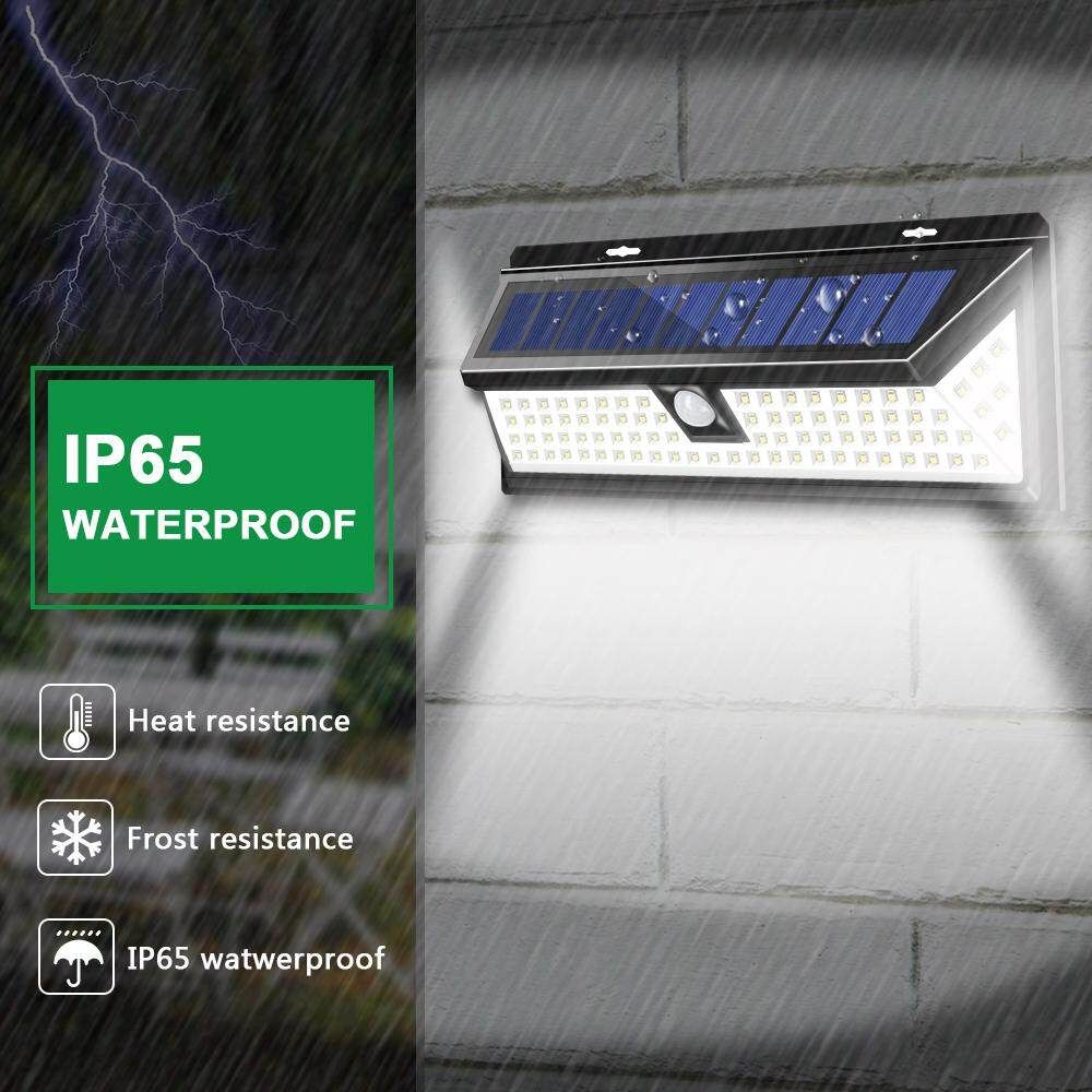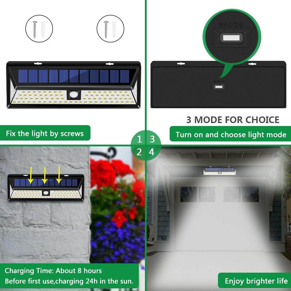 -IP65 WATERPROOF AND HEATPROOF: Made of high-impact ABS which can withstand rain, snow, sleet and extreme weather conditions. IP65 Waterproof and heatproof outdoor solar security lights for garden, driveway, pool, garage, stairs, porch, etc.We also simplified installation and equipped with a full set of screws, no wire and easy mounted.