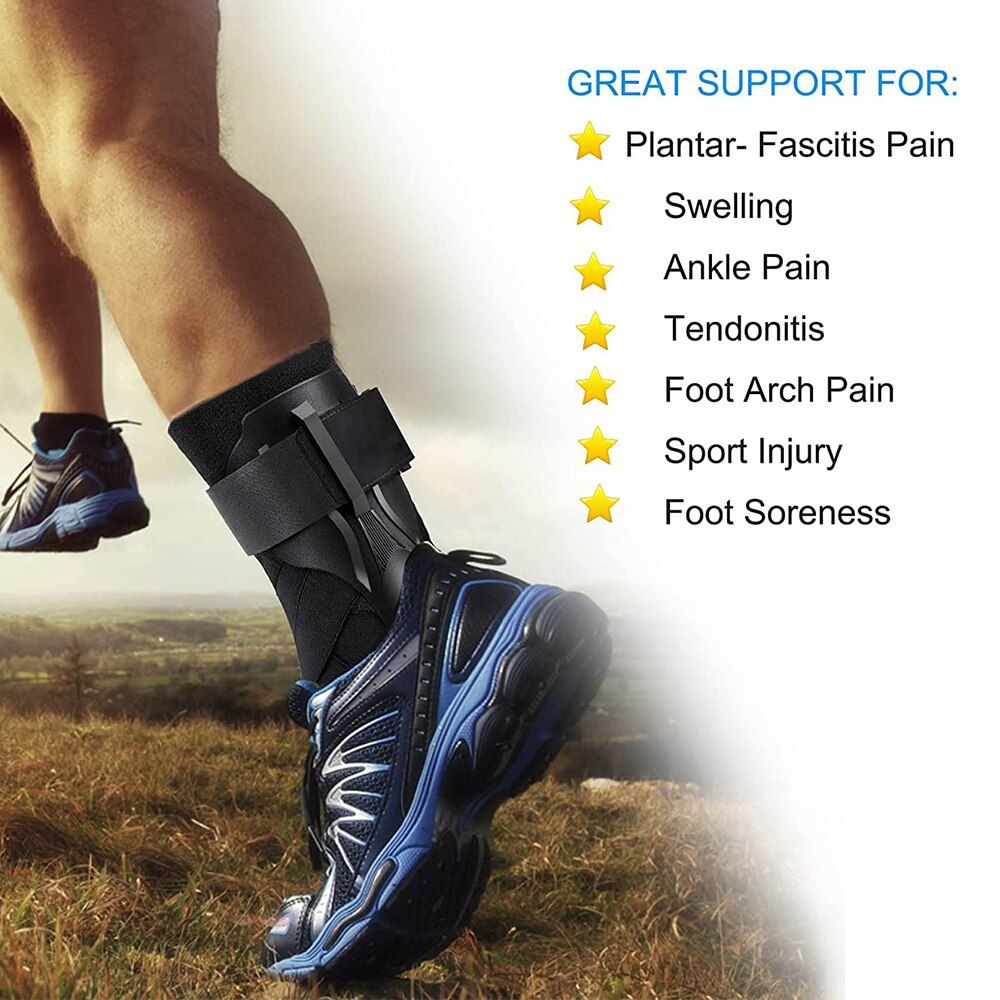 Better support, protect yor ankles GREAT ARCH SUPPORT FOR: √ Plantar- Fascitis Pain √ Swelling √ Ankle Pain √ Tendonitis √ Foot Arch Pain √ Sport Injury √ Foot Sorene About this item: 【ANKLE SUPPORT 】- Fast pain relief and recovery on injured ankle, potential accidents protection. MTATMT ankle is made from superior neoprene and breathable nylon, comfortable experience guards you to achieve perfect performance with uncompromising supports and protection. You can wear this ankle s for men all day long. 【CONFIDENT STABILITY TO YOUR ANKLE】- Equipped with 2 spring steels and 2 ss on both sides of the ankle stabilizer. Constructed design brings stability and provides better protection for your ankle to have free movements with confident support. Best ankle for women, men and children. 【RELIEVE PAIN & COMFORTABLE ANKLE 】- Wide range use of this ankle s can reduce and eliminate ankle pain caused by sprains, tendonitis and other acute injuries. Our ankle support wrap and lace up ankle are designed to help with healing and prevention of sports related injuries as well as minor accidents. 【WIDE RANGE USES TO SPORTS】- Fits both left and right sides of the ankle. This ankle for sprained ankle prevents your ankle injury or sprains from turning inside and out. Ankle for sports is suitable for sports that under highly physical preure on ankles, basketball, football, golf, baseball, on foot, running, hiking, cycling and daily life. Perfect for your athletic performance. 【MOVE WITH EASE】- MTATMT ankle support and ankle for women bring protective and preventive features that keeps your ankle safe and comfortable from ankle movements. Suitable limitations on this ankle let you move properly with shoes, and leaving space to flexibility.