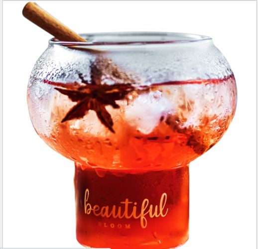 1pcs Beautiful Bloom Beau Martini Cocktail Pint Glass Spherical Ball Lemonade Collins Mug Dessert Mousse Cup Yogurt Ice Cream Tumbler-Collins Glass(transparent)