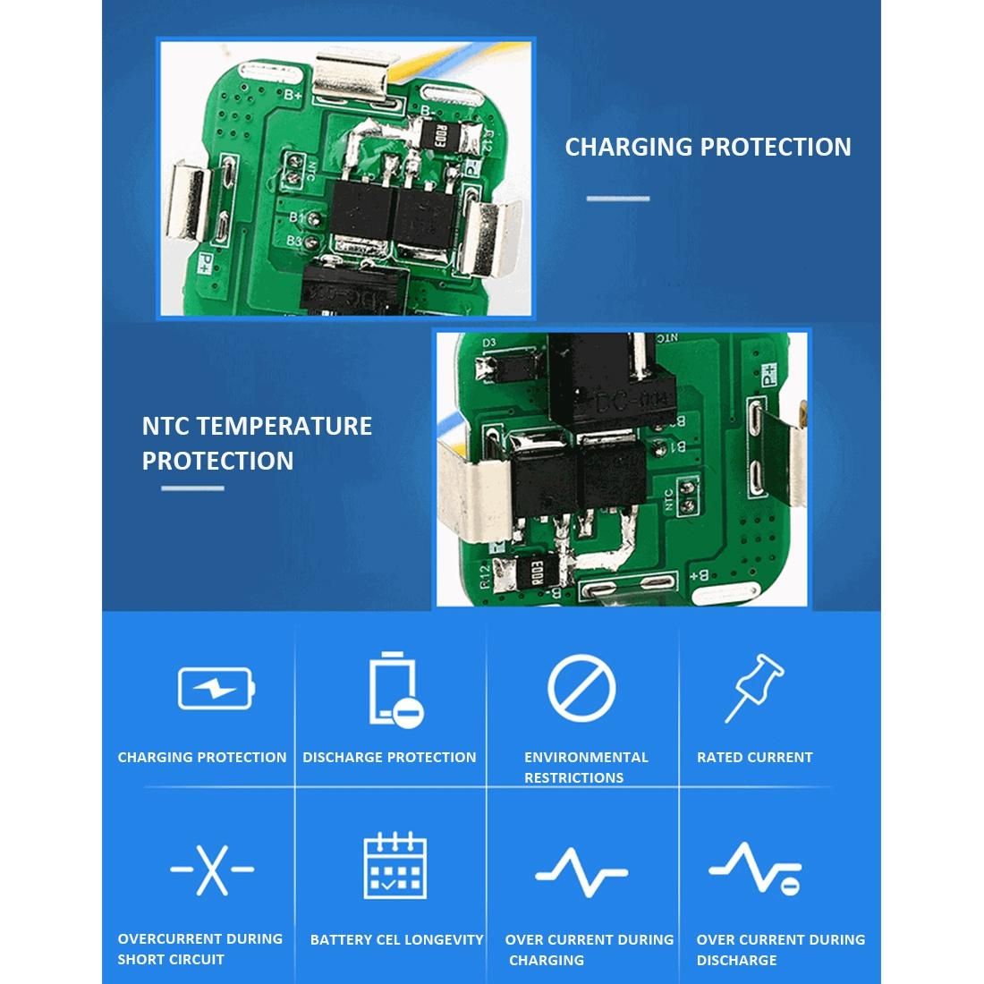 Detailed Information About The Product:The protection board is for 4 series Li-ion batteries, mainly used for electric power tools.