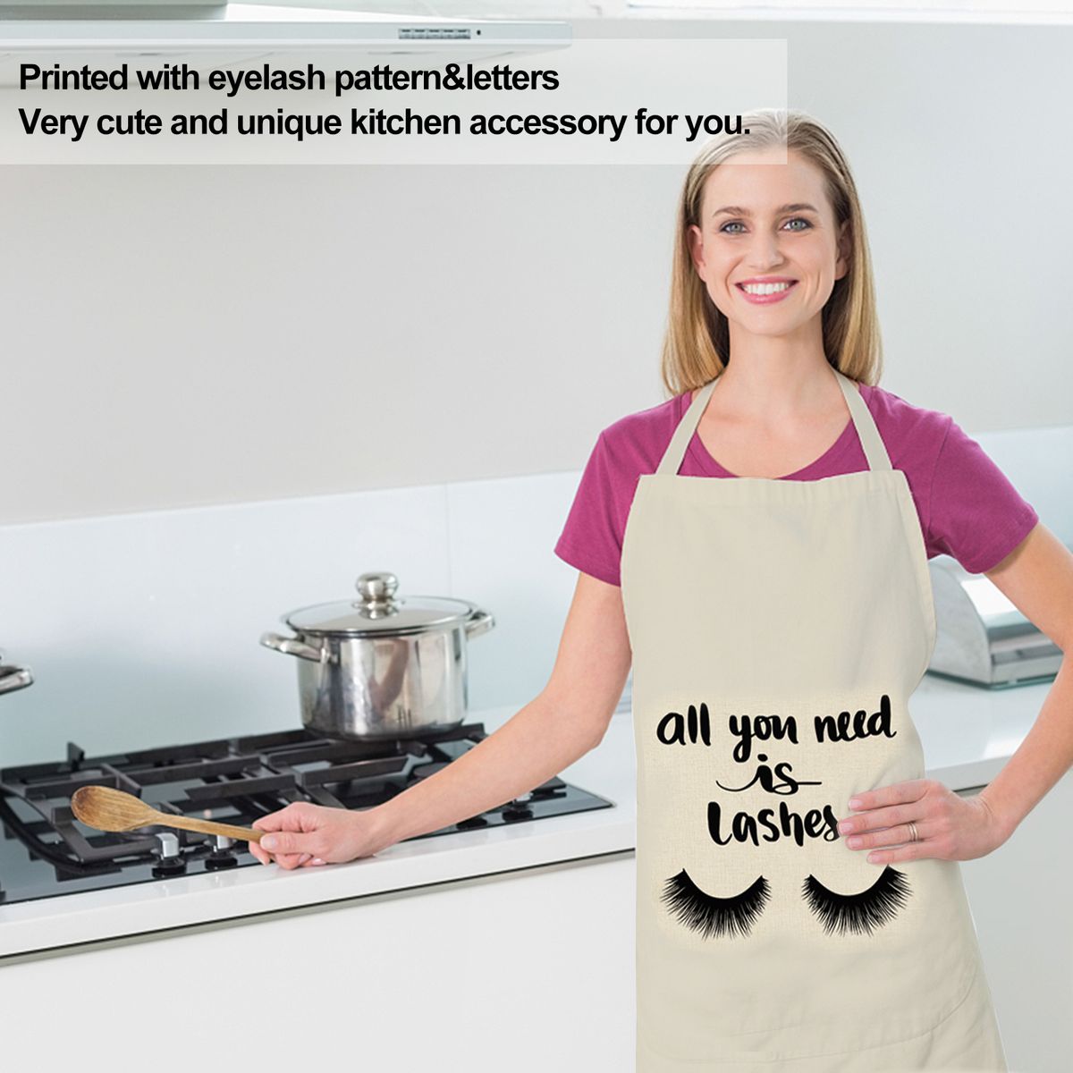 Printed with eyelash pattern amp;letters, very cute and unique kitchen accessory for you.