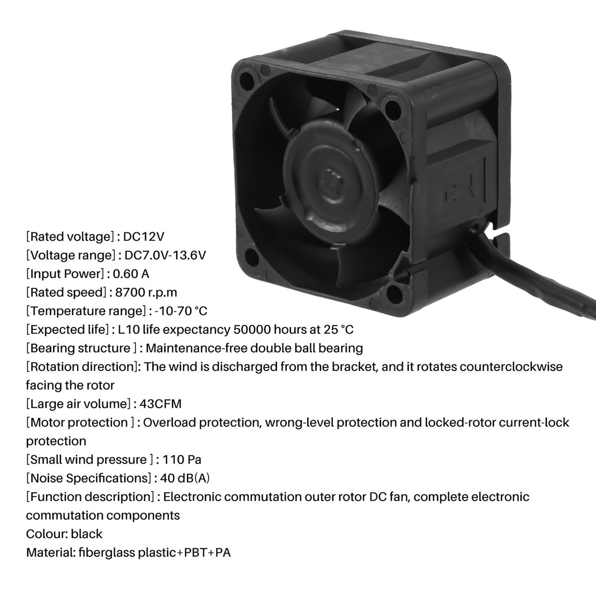 [Function description] : Electronic commutation outer rotor DC fan, complete electronic commutation components