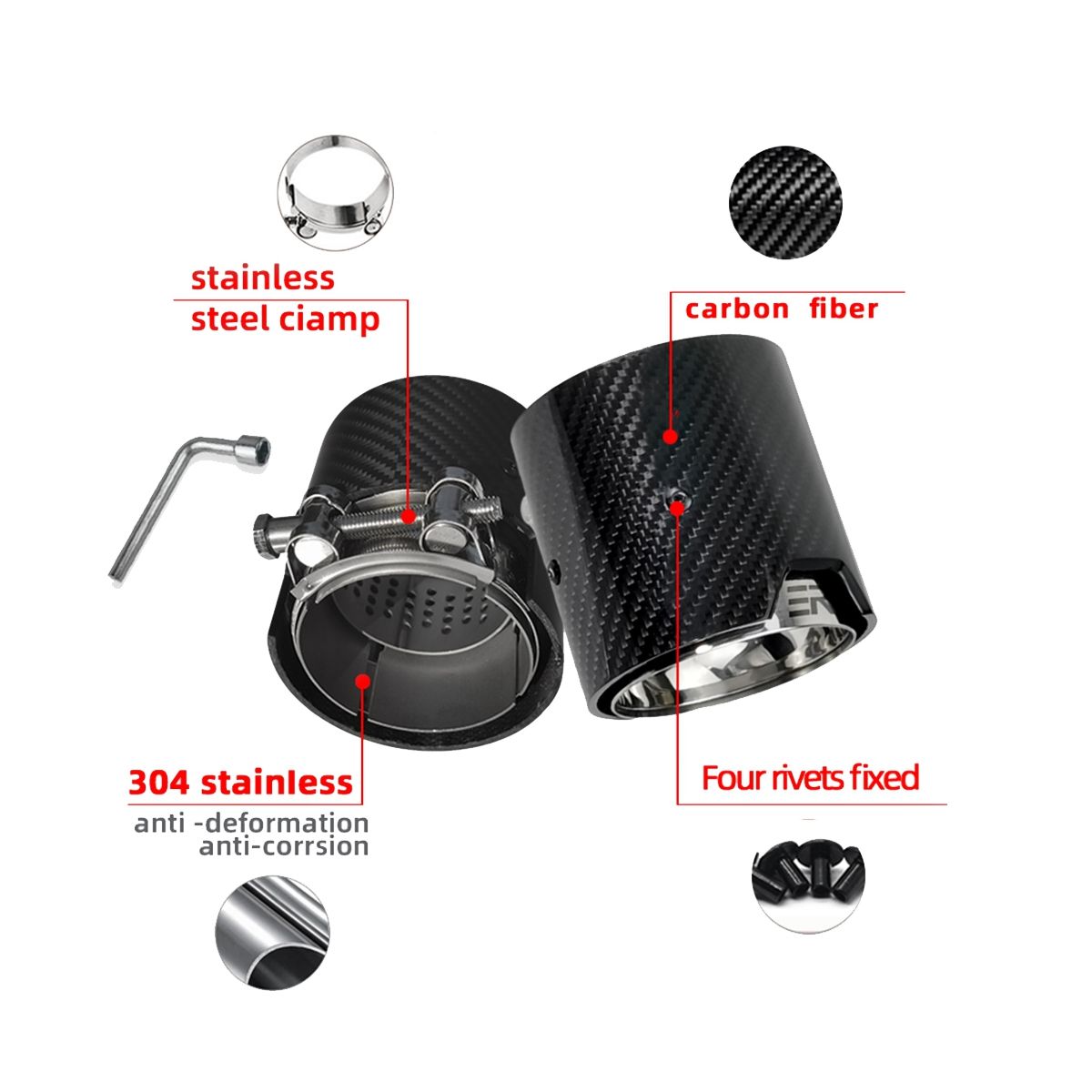 1. M2 F87/ M3 F80/ F82/ F10/ M6 F12 Exhaust Tip: Choose Inlet Size 70mm (order 4 Pieces)
