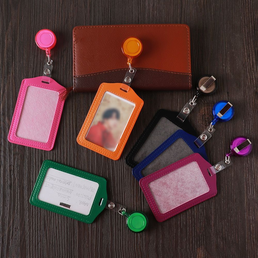 1X 1PC Credit Card Holders Bus ID Holders Identity Badge Protective Shell with Retractable Reel Office Supply Red/Yellow/Blue