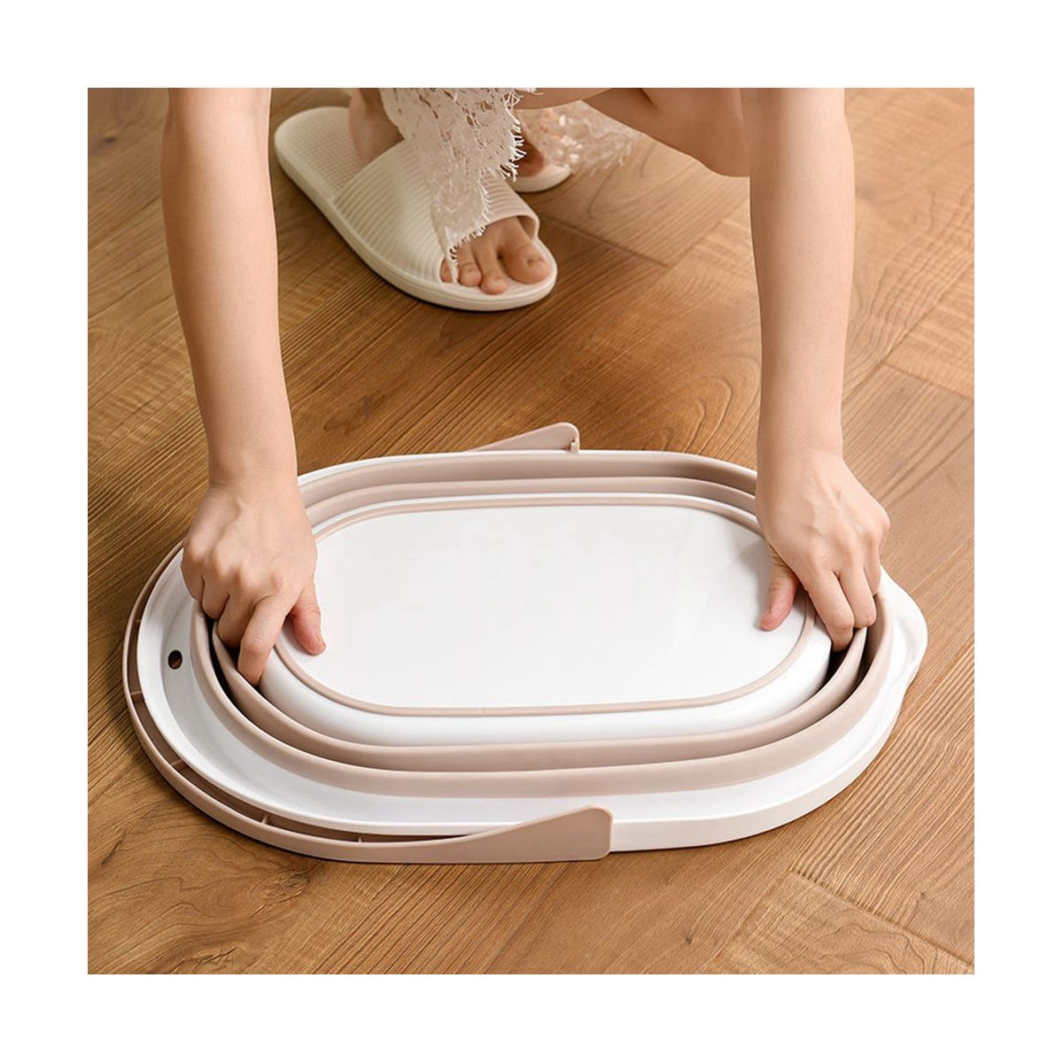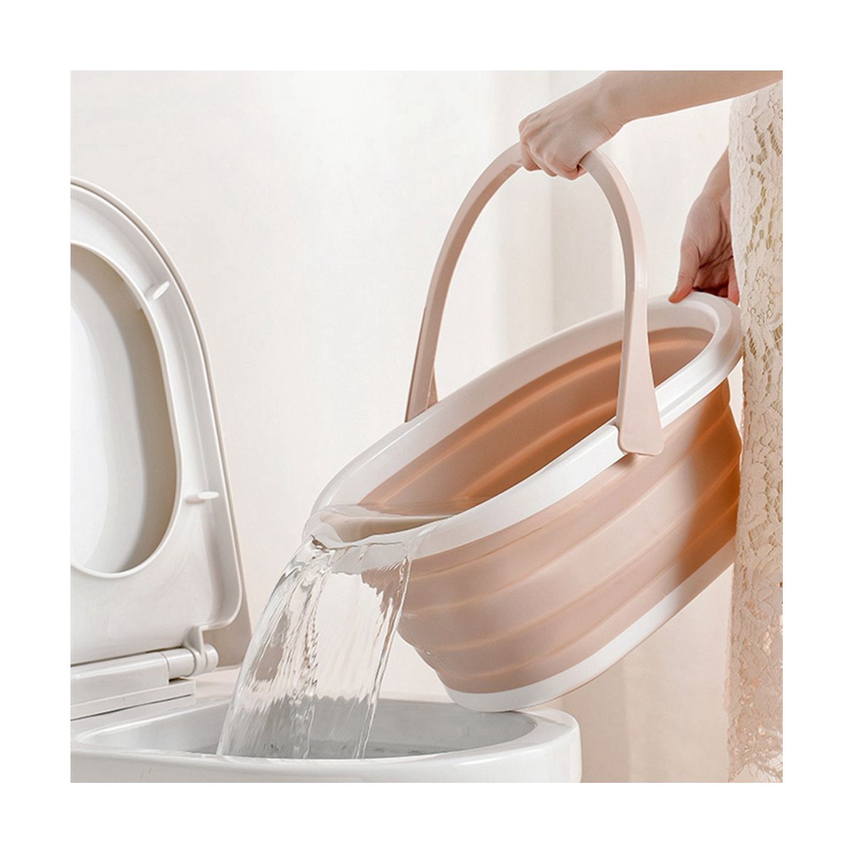 [Material] Collapsible bucket Made from premium PP + TPR material, has comfortable, non-slip handle.