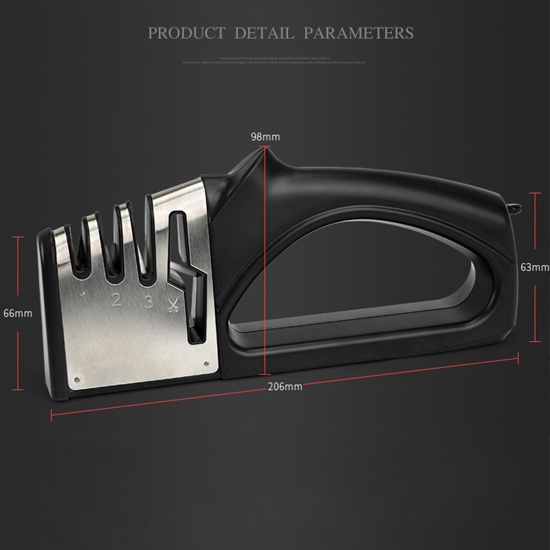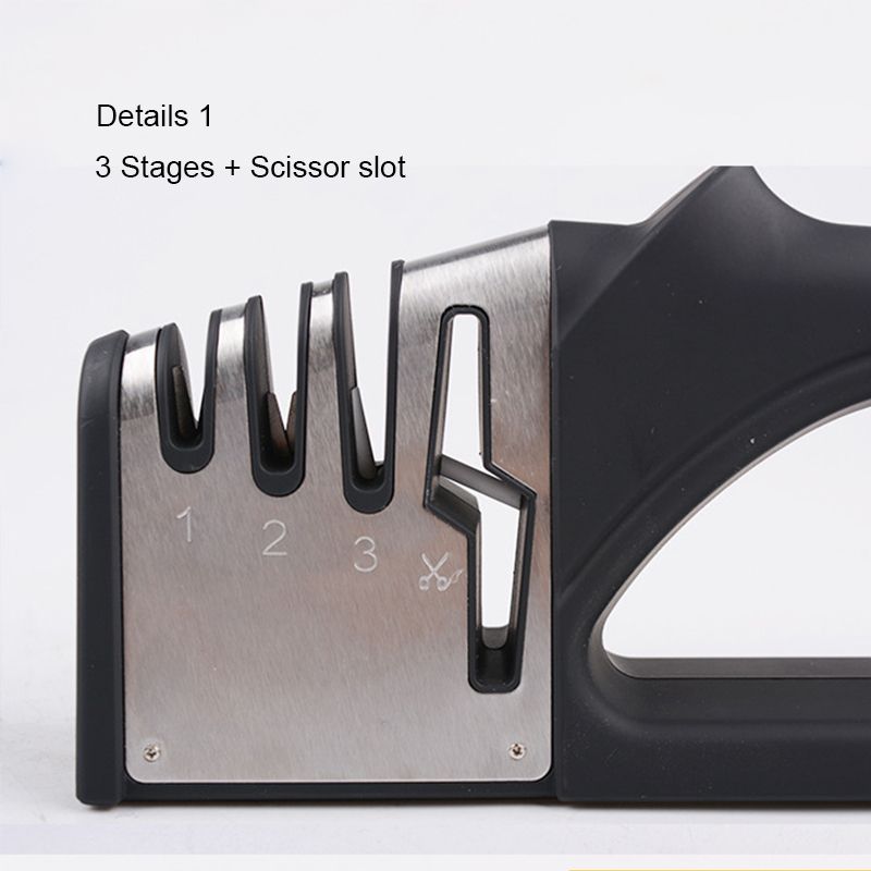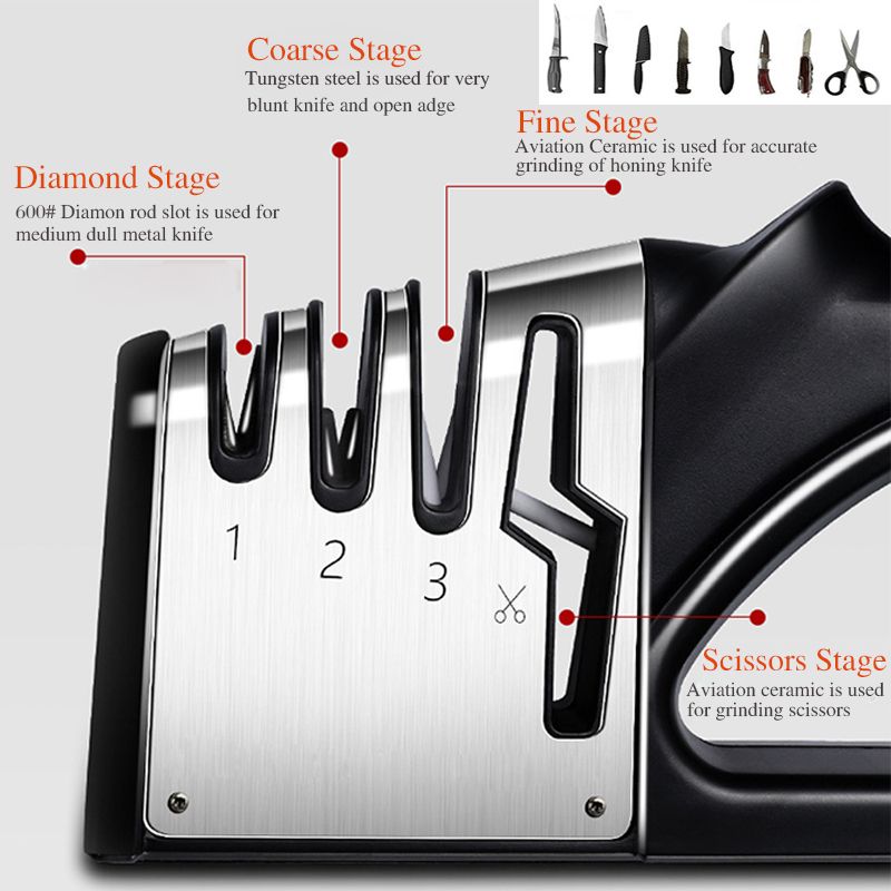 Features4 stages, suitable for all kitchens Steel knives and scissorsUse better sharpening material to improve sharpening efficiency