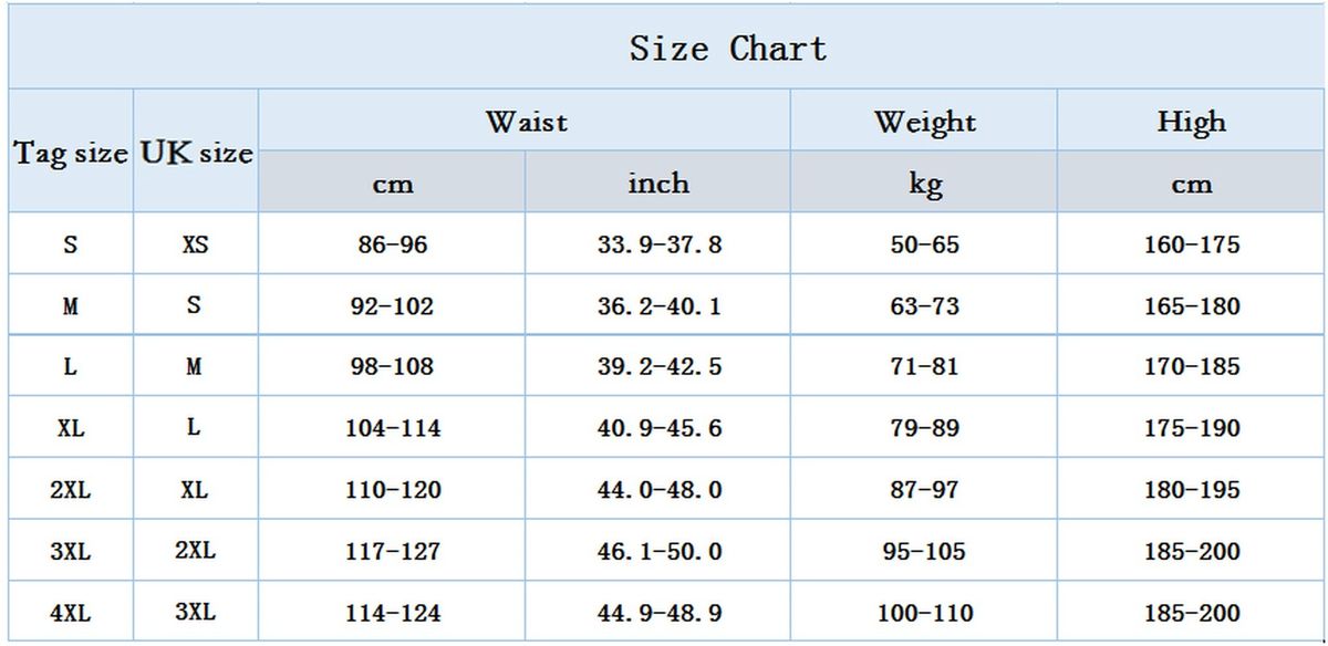 Size:M-4XL (UK Size S-3XL)