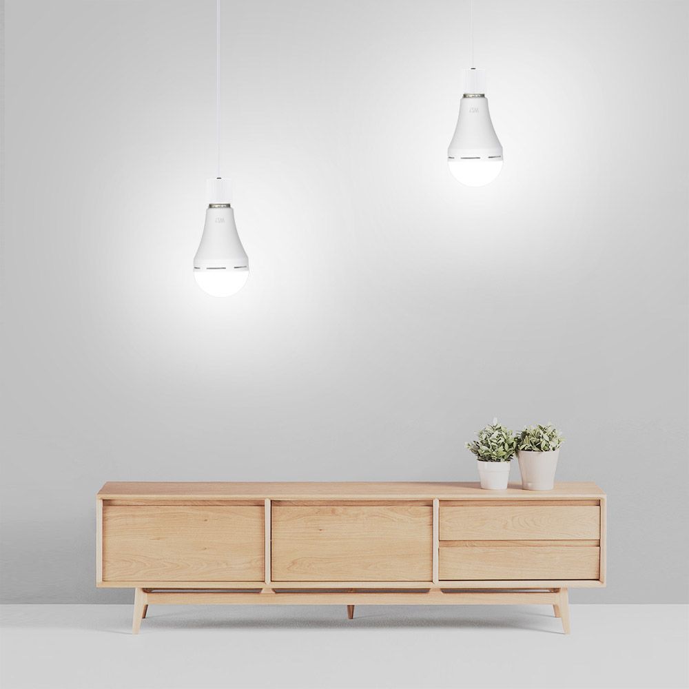 Rechargeable LED bulb, which works as regular LED bulb, when there is a power outage, it can be taken down from the socket and used as emergency light, so you will never be left in dark. In addition, it can be hung up, perfect for camping, garden, party, etc.
