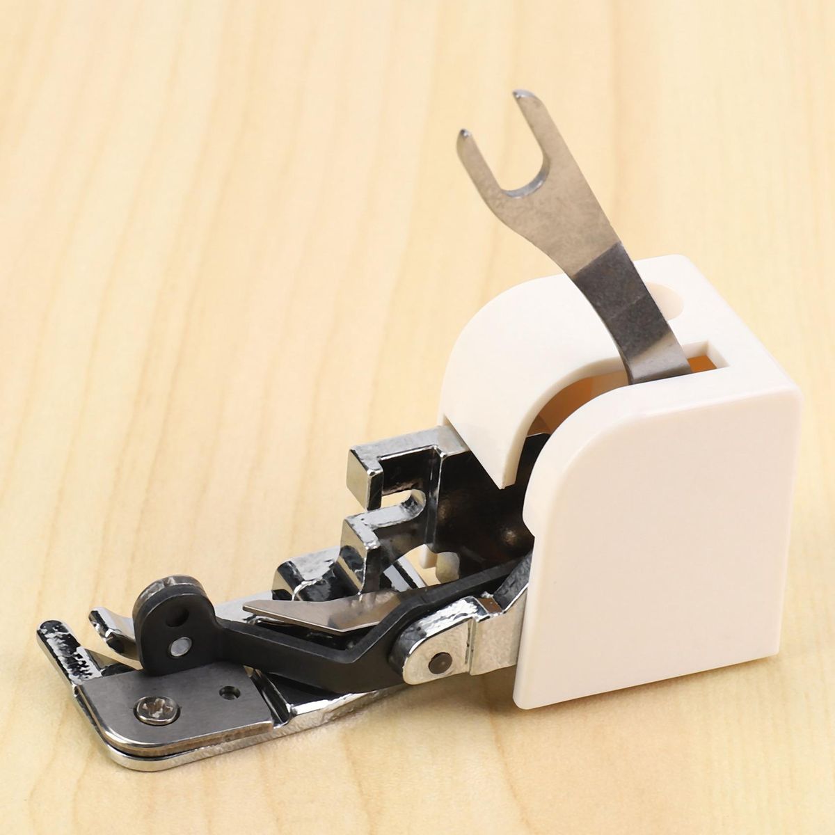 To simulate a serged stitch on a sewing machine,nothing comes closer than the side cutter foot.Easily sew an over-casting stitch to lock thread around the edge of fabric,perfectly aligned with the edge.