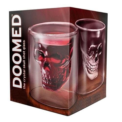 This formidable shot glass is Freds tribute to the Skull of Doom,which Mayan legend claims has the of lie and death,the to heal or to smite,the to create miracles. We make no claims beyond these: this glass will hold 2 ounces of your favorite beverage and will stare right in your eye as you down your shot. Dont blink.