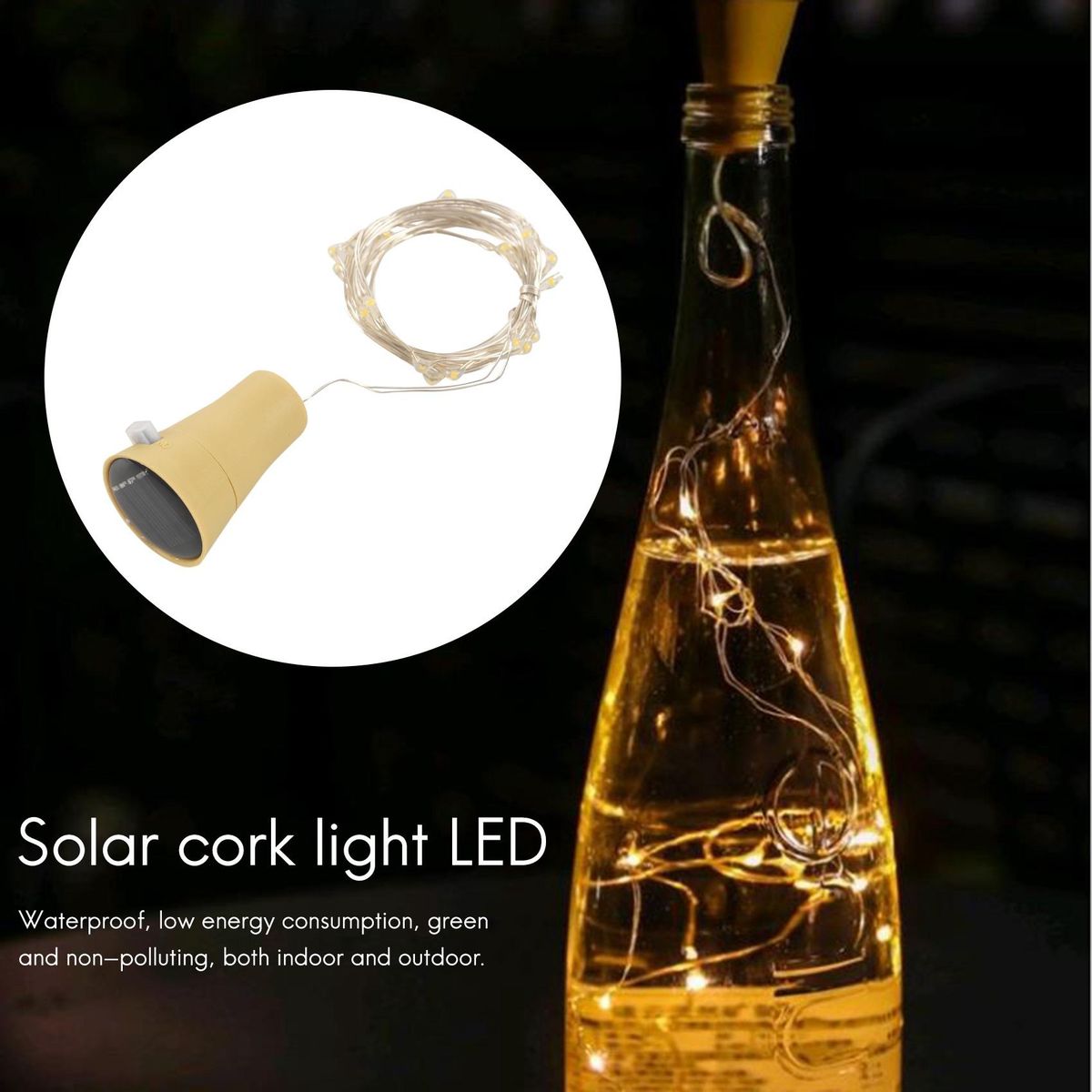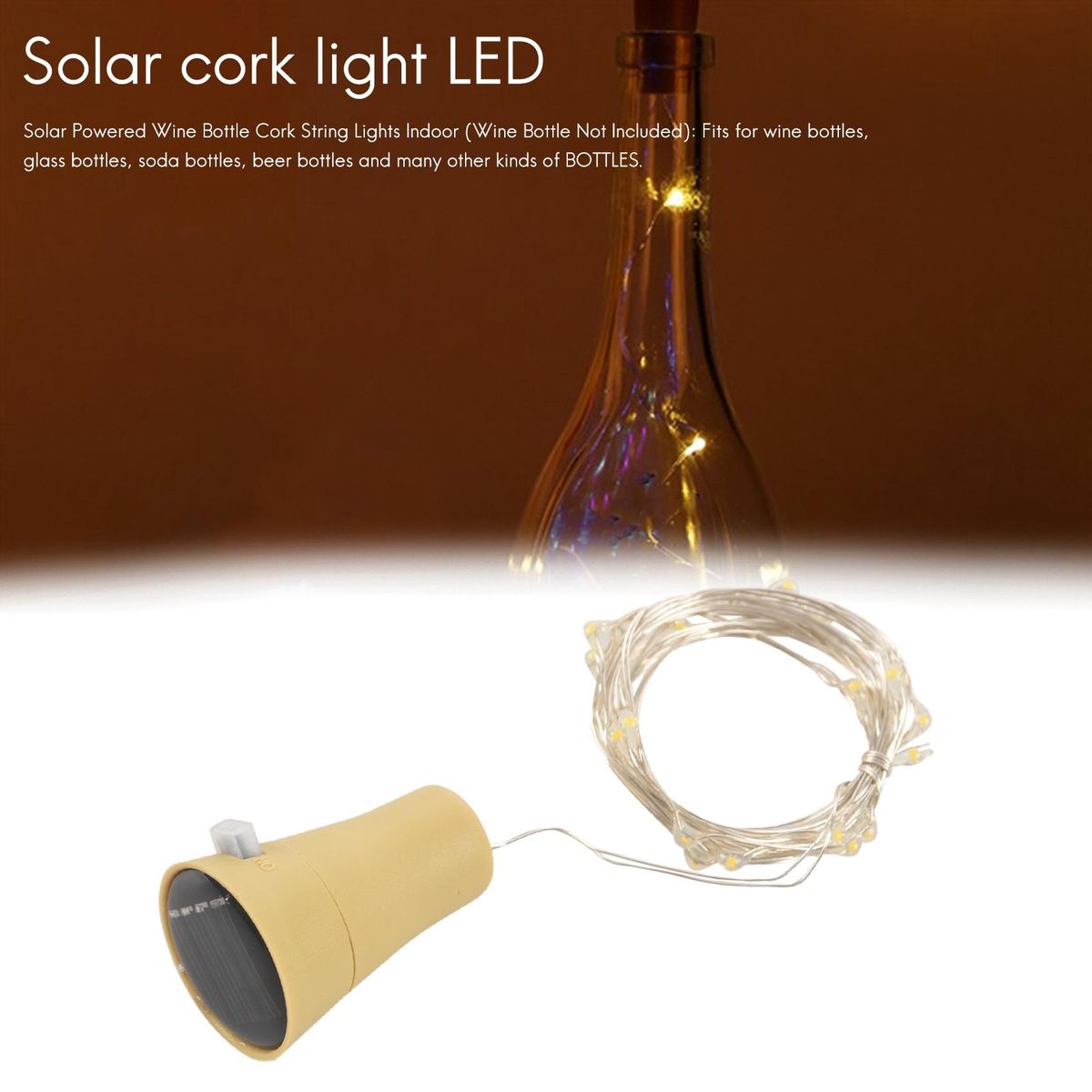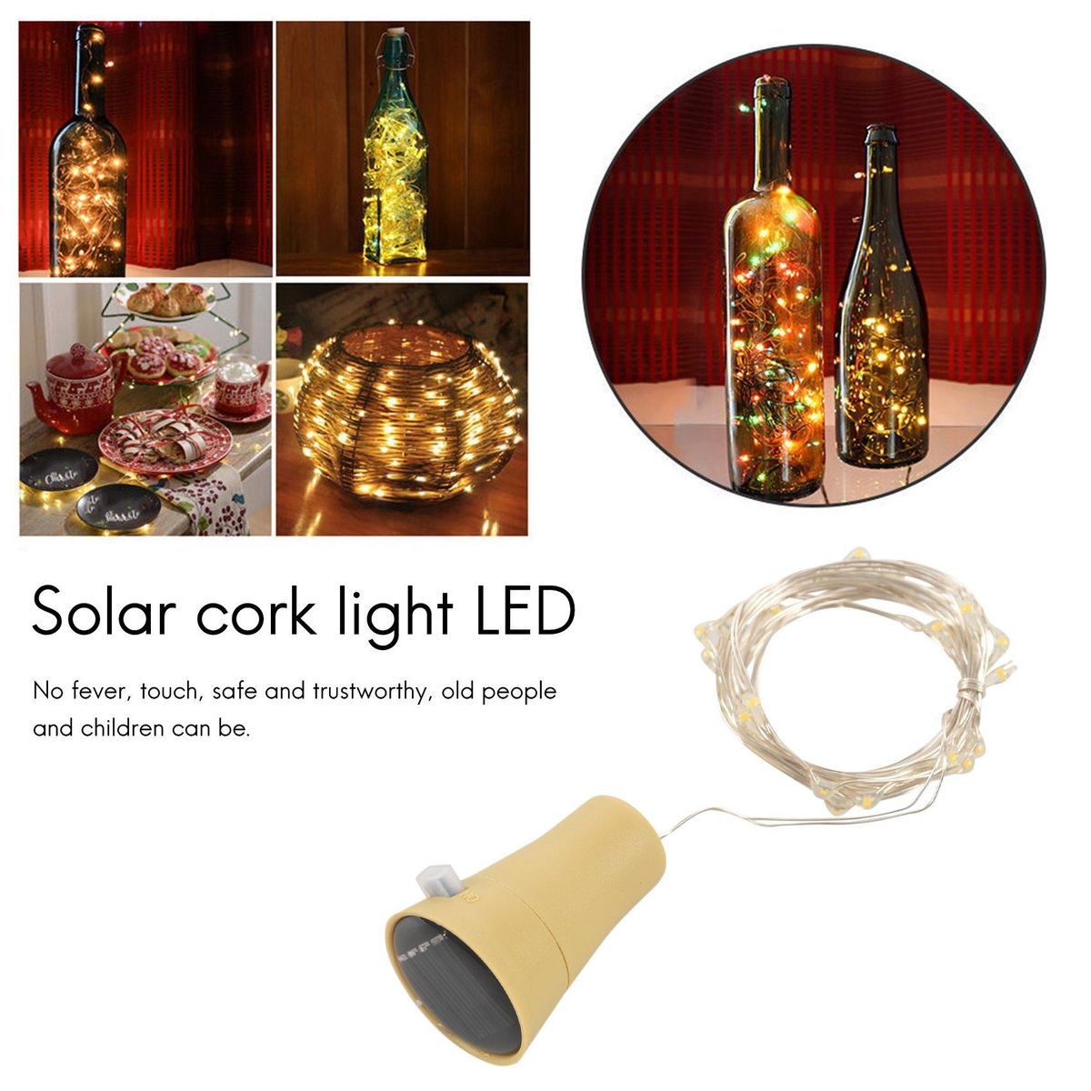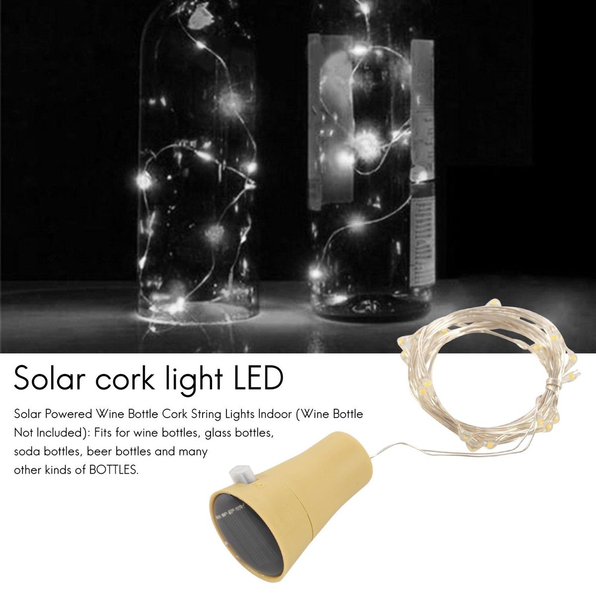 Number of lights: 20LED Luminous 10 ) Protection level IP68 Life expectancy 100,000 H) Input voltage 1.2 V) Wire diameter: 0.4mm Can it be dimmed Driving voltage: 2.05V ± 0.1 V Drive current: 20mA ± 0.5 mA The battery capacity is 80mA built-in), the conventional discharge is 12mA, and it can be fully after 8 hours in the . Package Contents: 1 x wine stopper 1. This LED string is the ideal decoration for Christmas, , New Year, Valentine's Day, party party and wedding. It can be installed in , living room, bedroom, staircase corridor, courtyard, garden and anything you can of The place adds a atmosphere and a atmosphere to the . 2. You can also make your bookcases, photo frames, doors and windows, etc. become more colorful on weekdays. Because it can not be heated for a long time, it can be perfectly combined with clothing textiles, flowers and furniture. Is the most powerful decoration for shop windows and corners. 3. Waterproof, low energy consumption, green and non-polluting, both indoor and outdoor. 4. No , touch, safe and , people and children can be. 5. Solar Powered Wine Cork Indoor Wine Not Included): Fits for wine bottles, glass bottles, soda bottles, beer bottles and many other kinds of BOTTLES.