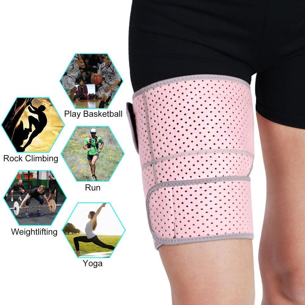 The thigh support brace helps to ease pain of thigh, quadriceps and hamstring muscle strain, care for your joints and muscles, as well as alleviating pain caused by old injuries; provides a range of quality supports for the thigh and hamstring areas
