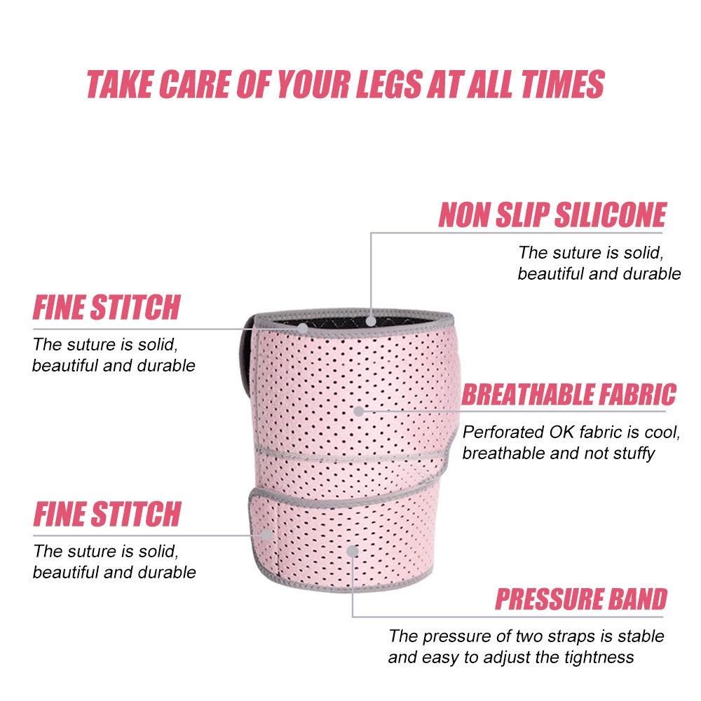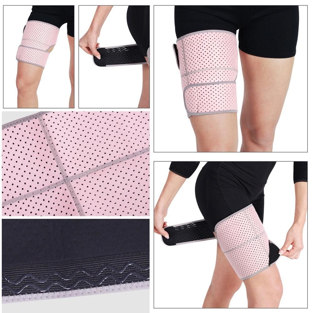 【Lightweight and Breathable Material】Special vented moisture-wicking material lining with numerous small air-venting holes that wicks away sweat, and brings you a cool and comfortable feeling; soft surface with exquisite overlock sewing makes this thigh wrap skin-friendly and durable, they're also washable and not easy to be deformed