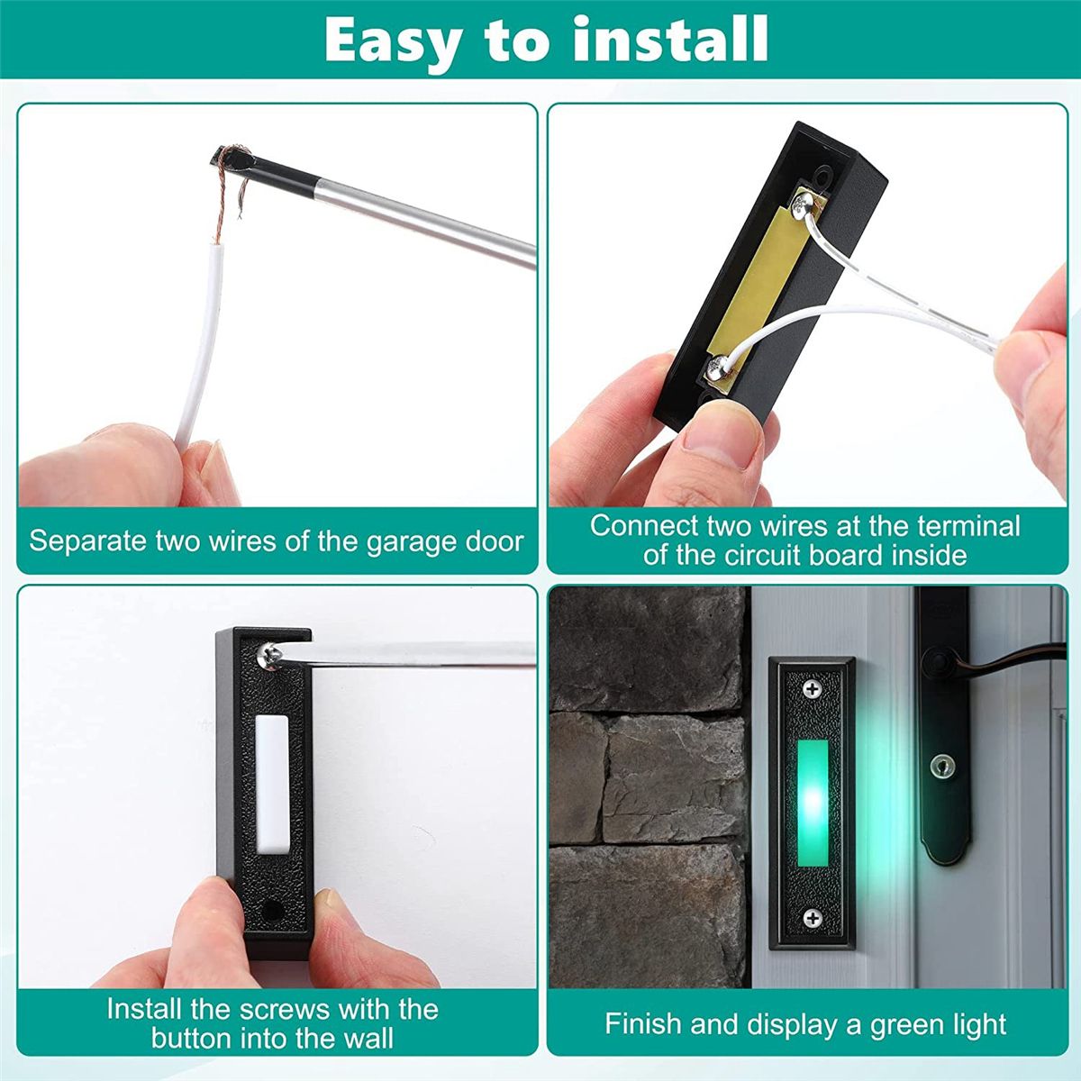 [Power saving]: The upgraded LED light doorbell button is more beautiful and power saving than other doorbell switches; It's easy to find green light in the dark