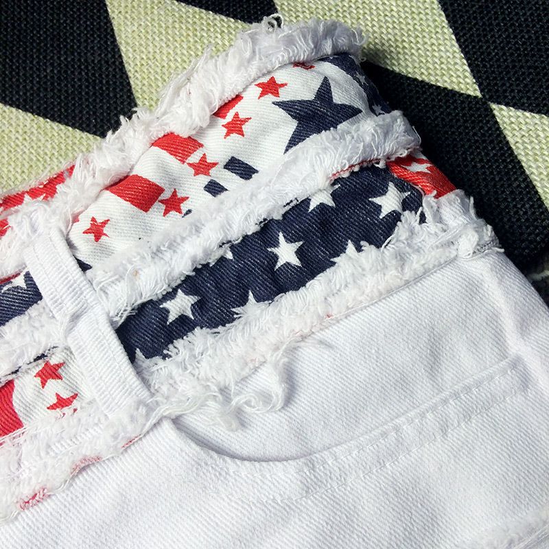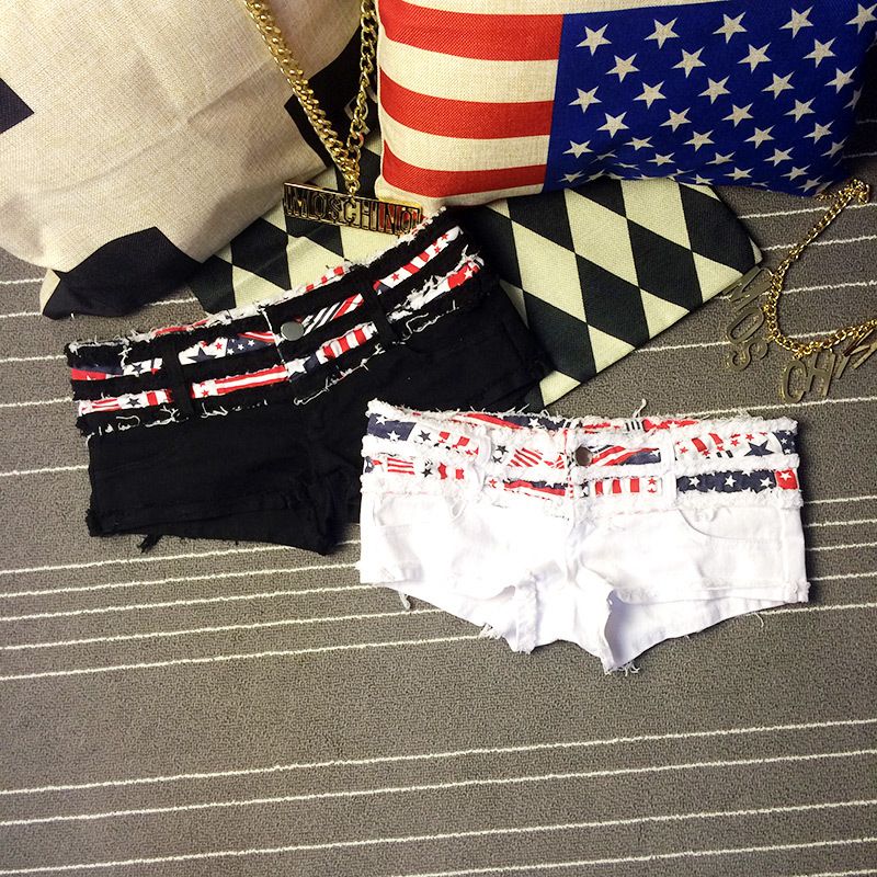 1pcs Women Sexy jeans shorts plus size Summer cotton national flag denim shorts Ladies Skinny jeans super short pants Girls