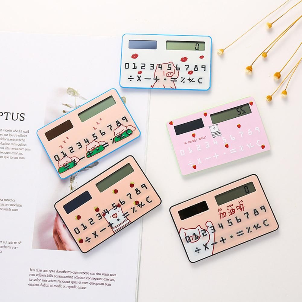 1X 1pcsSolar Calculator Ultra Thin Mini Fashion Card Sized 8-Digit Portable Solar Powered Cartoon Gift Pocket Calculator Stationery