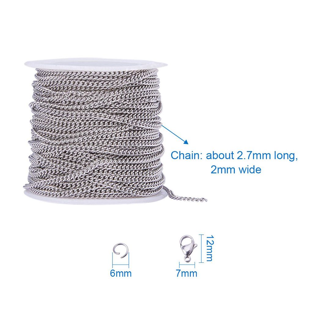 Material: Stainless SteelSize: Chain: 10 meters/roll, Lobster clasp: 12x7x4mm; Jump ring 5x0.8mm