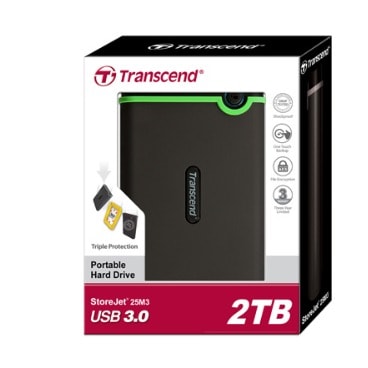 The Transcend StoreJet 25H3P Series is approved by the US Military drop-test standard (MIL-STD-810F). It is built with a triple-layer protection to ensure your data is safe even if the drive is falls or slips accidentally. This drive is powered by the USB port on any PC or laptop, which means no external power is required.Besides incorporating a brilliant colour anti-slip rubber enclosure, the StoreJet 25H3P includes a reinforced hard casing that evenly distributes the force of an impact, and an internal hard drive suspension damper as a last line of defense. It is also equipped with an extremely convenient OneTouch auto-backup button, which lets you instantly backup and synchronize data with your computer.Transcend's reputation for long-term durability and reliability provide even more peace of mind. Transcend is a leading total storage provider who combines execution agility with the resources of a global technology corporation. We offer the industry's most comprehensive range of storage technologies, from hard disk drives (HDDs) and solid state drives (SSDs) to NAND flash memories. Transcend is a world's standard storage supplier that owns design, development, manufacturing, sales, and other infrastructure functions spanning the enterprise, mobile, and retail environments for both HDD and SSD products.